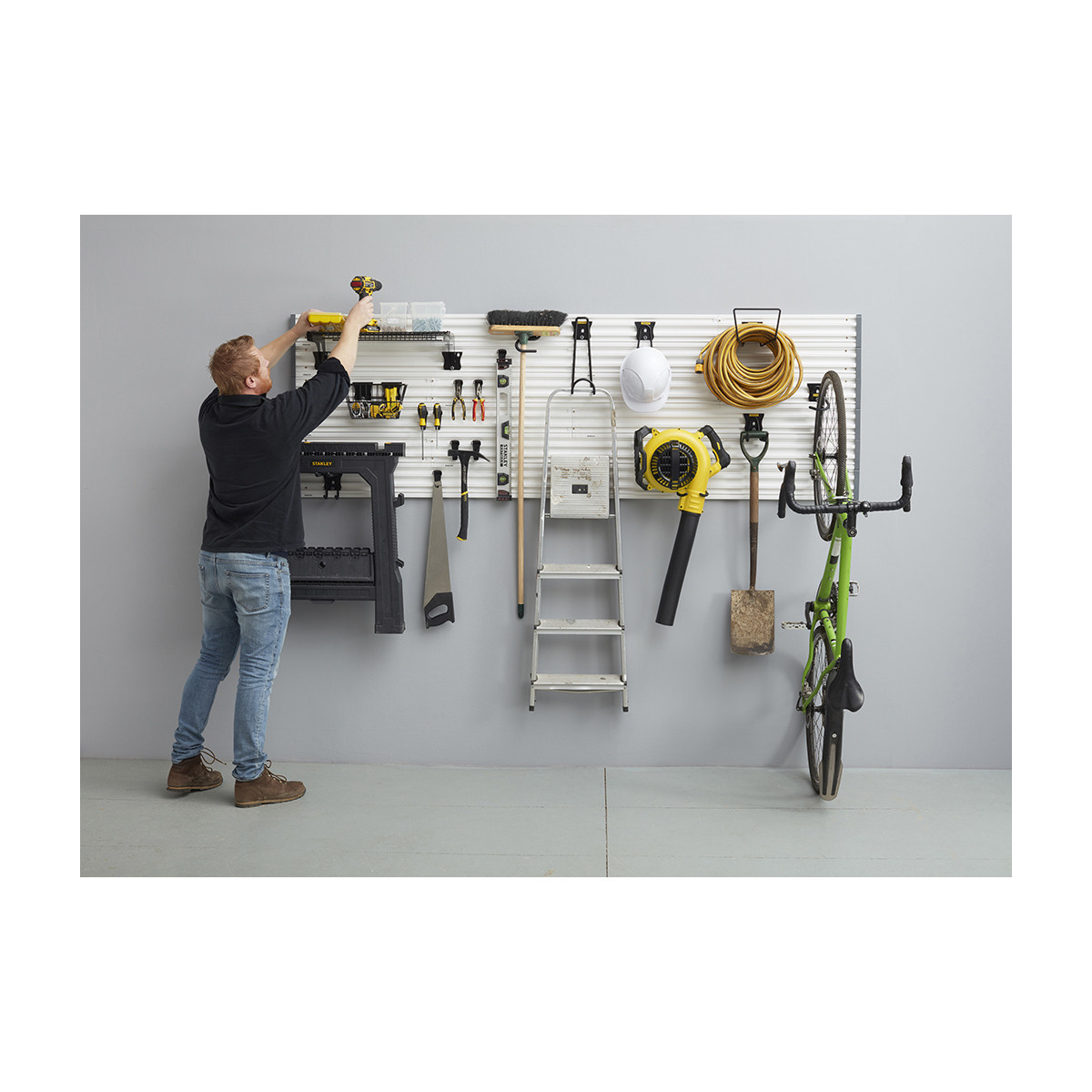 Stanley STST82602-1. Tipo: Portautensili con gancio, Capacità massima di carico: 140 kg, Materiali: Plastica. Larghezza: 1210 mm, Profondità: 25 mm, Altezza: 140 mm
