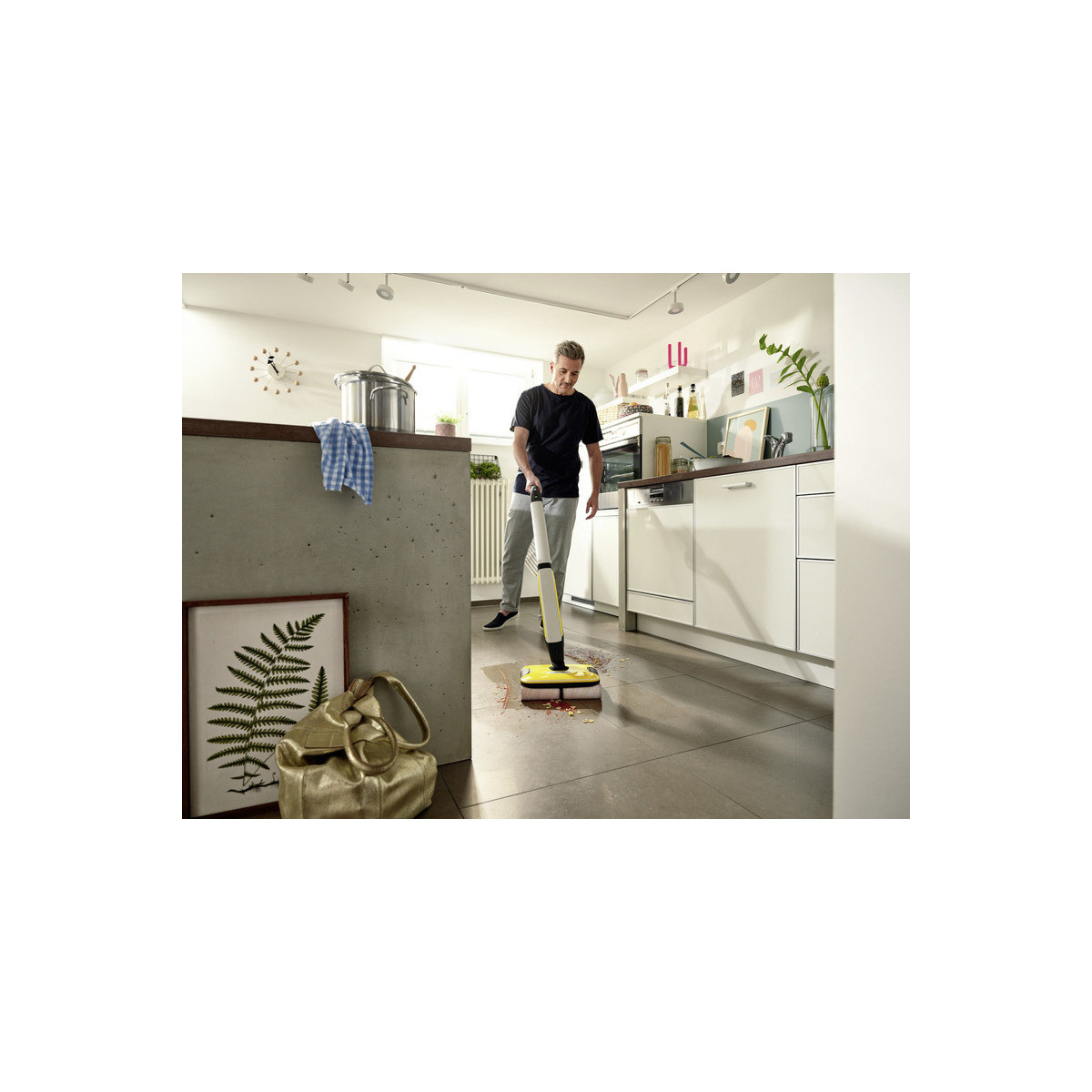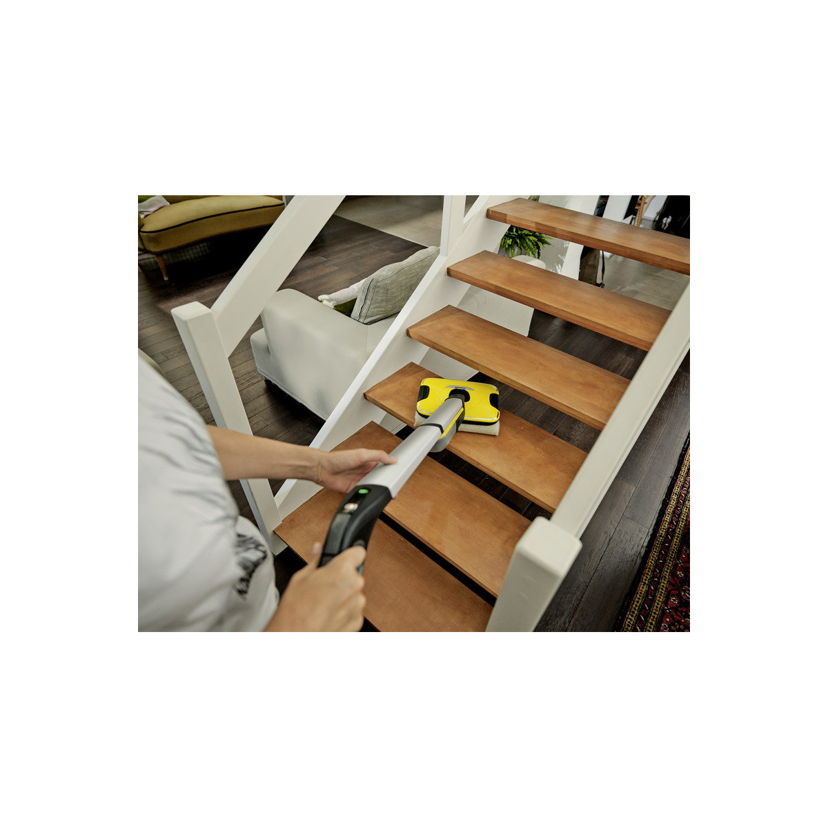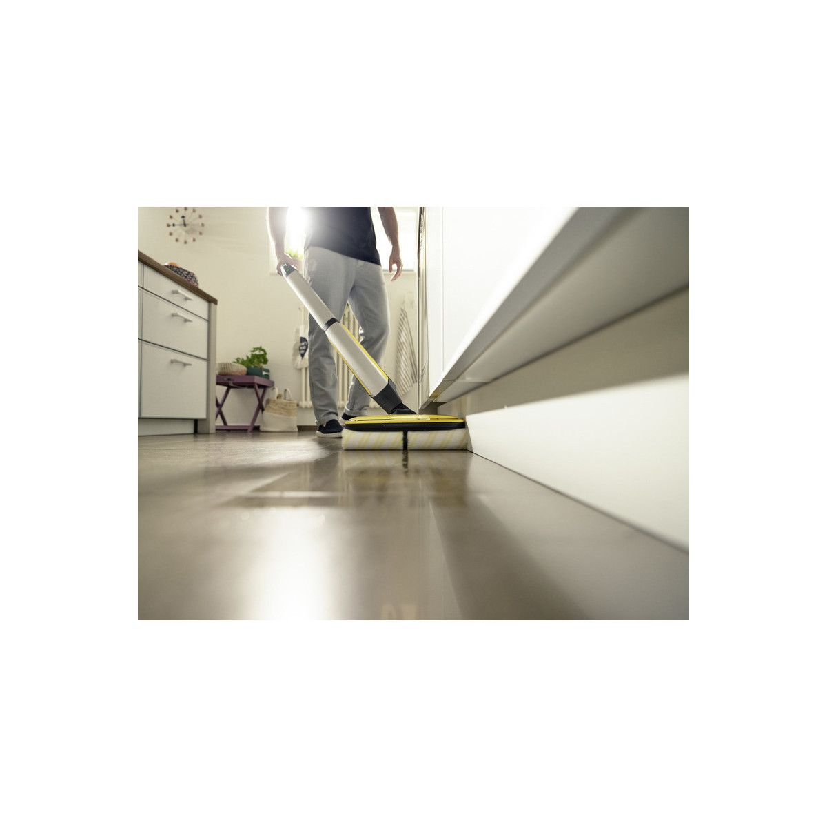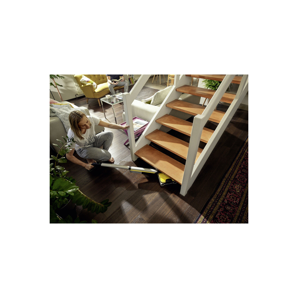 La lavapavimenti a batteria FC 7 raccoglie lo sporco quotidiano sia asciutto che umido in una sola passata. Non è più necessario passare l'aspirapolvere prima di pulire e si può così risparmiare fino alla metà del tempo **. La sua tecnologia a quattro rulli con rotazione controrotante consente una pulizia rapida ed efficace. Anche peli e capelli vengono raccolti senza problemi grazie al pratico filtro. Inoltre, la lavapavimenti permette la pulizia dei pavimenti fino ai battiscopa, pulendo fino al 20% in più rispetto al tradizionale spazzolone*. Trascinare faticosamente il secchio è un ricordo del passato, poiché la FC 7 ha due serbatoi: uno per l'acqua pulita e uno per quella sporca. I rulli vengono costantemente bagnati con acqua pulita mentre l'acqua sporca finisce direttamente nel serbatoio dedicato. Il volume dell'acqua e la velocità di rotazione dei rulli possono essere regolati su due livelli di pulizia per adattarsi al tipo di pavimento. La funzione boost invece agisce contro lo sporco ostinato. L'autonomia della batteria è di 45 minuti, per un'area di pulizia di circa 135 m². Il dispositivo è adatto a tutti i pavimenti duri (piastrelle, parquet, laminato, PVC, vinile).
