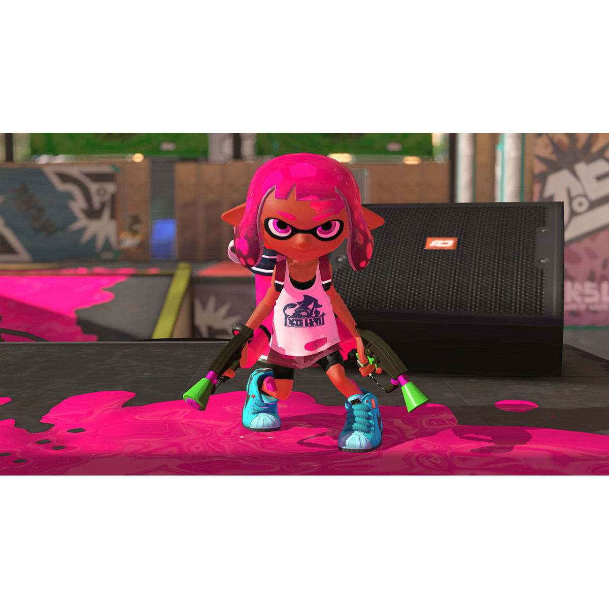 Splatta dove, quando e con chi vuoi in Splatoon 2, solo su Nintendo Switch. Le tradizionali mischie mollusche quattro contro quattro fanno il loro ritorno in questo secondo capitolo della serie, insieme a nuovi livelli, nuovi stili, nuove armi e molto altro!