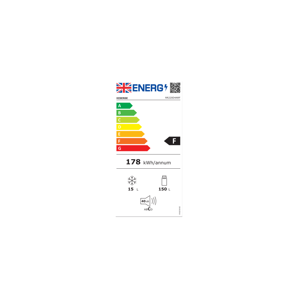 Hisense RR220D4ARF - Frigorifero Monoporta, 165 Litri, Classe F (A++), 51.9 x 128 x 51.3 cm