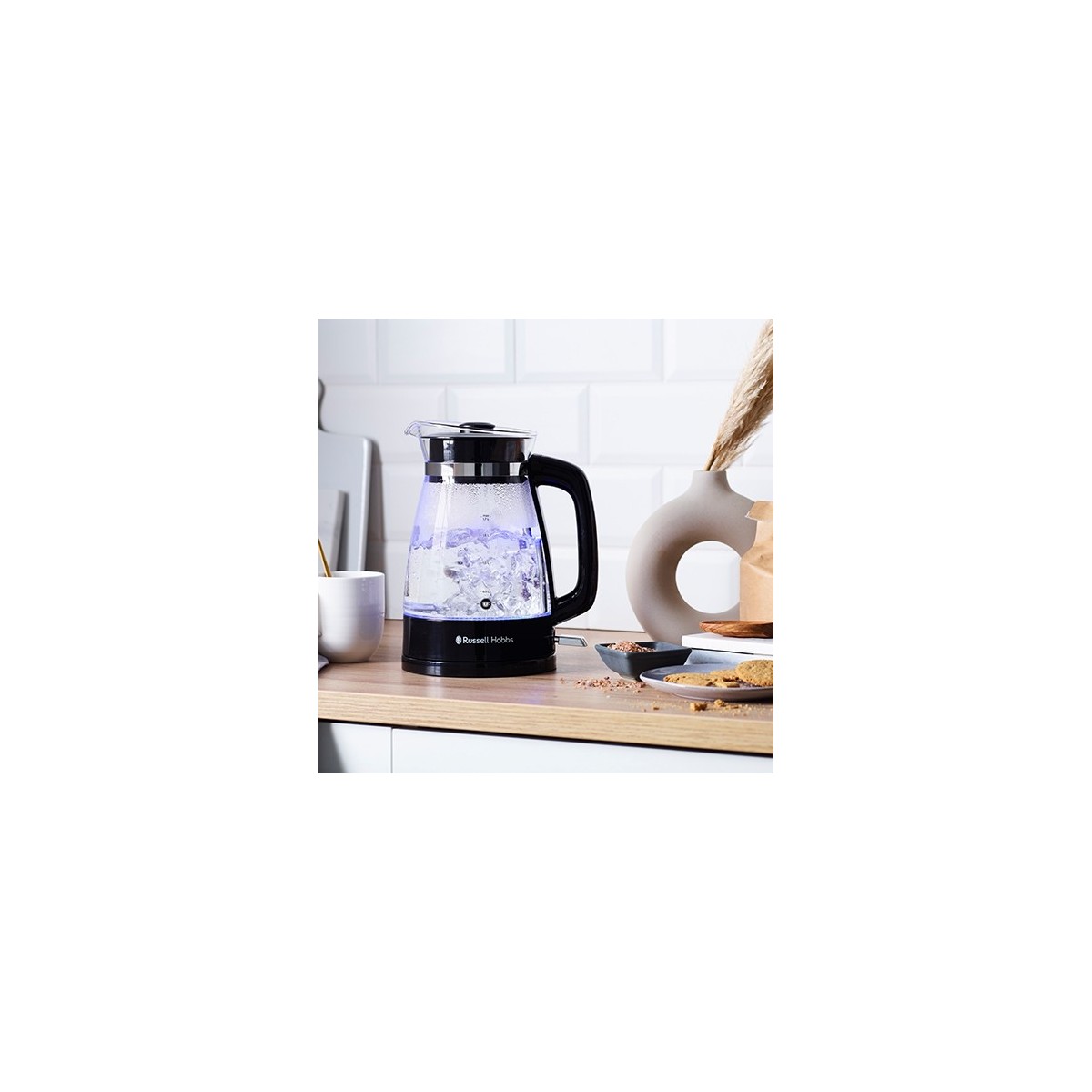 Russell Hobbs 26080-70. Capacità tanica acqua: 1,7 L. Potenza: 2400 W. Colore del prodotto: Nero, Trasparente, Materiale della scocca: Vetro, Plastica, Acciaio inossidabile, Indicatore del livello dell'acqua, Arresto di sicurezza contro il surriscaldamento, Filtro