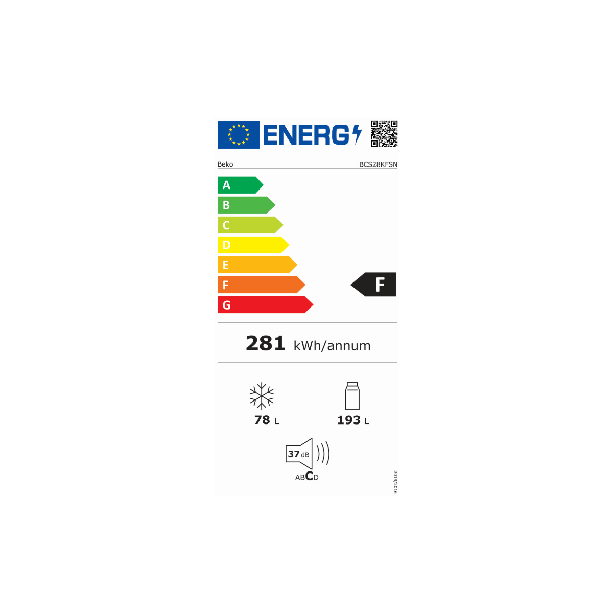 Beko BCS28KFSN - Frigorifero Combinato da Incasso, 271 Litri, Classe F, 177.5 x 54 x 54.5 cm