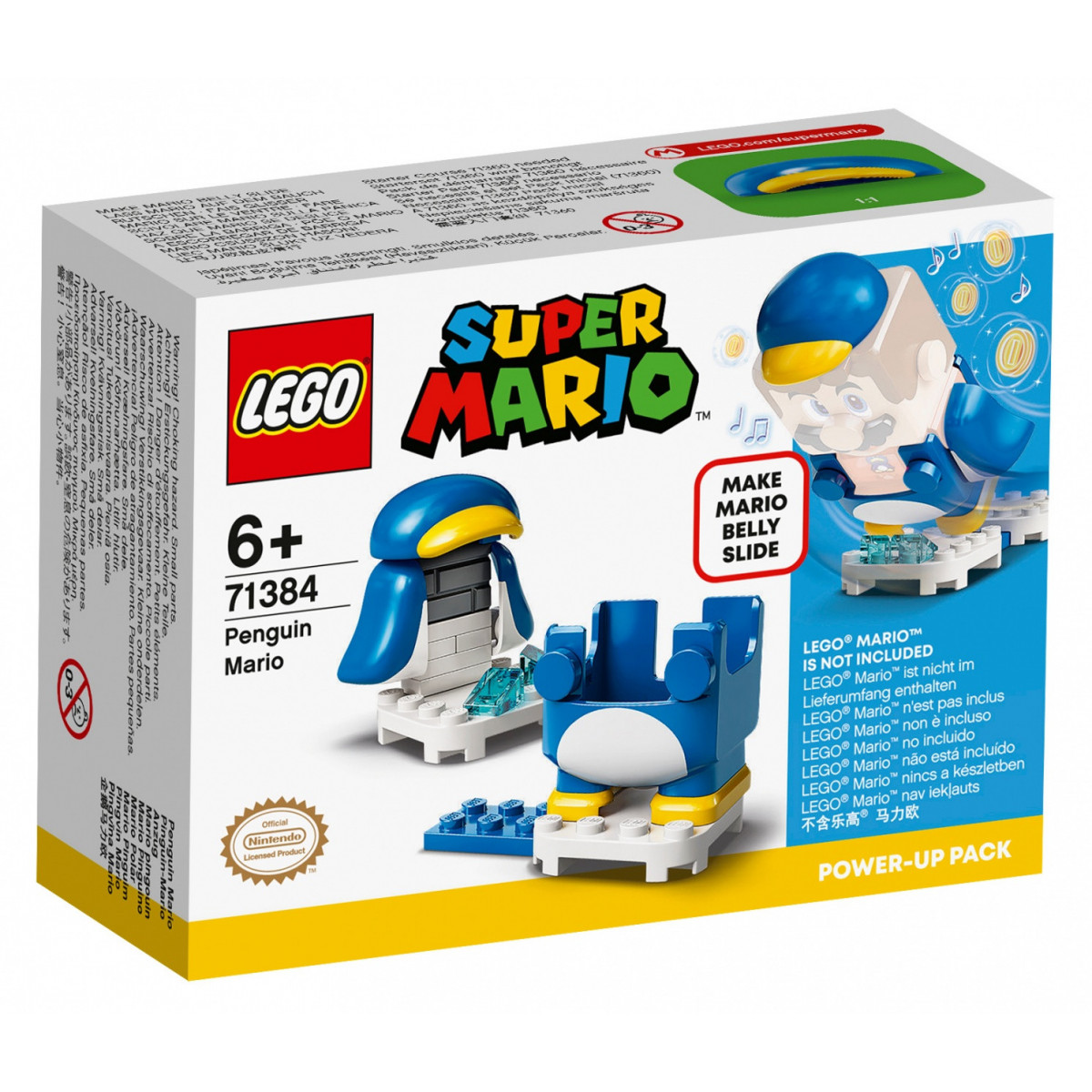 LEGO Super Mario Mario pinguino - Power Up Pack - 71384. Tipo di prodotto: Set da costruzione, Genere consigliato: Ragazzo/Ragazza, Età consigliata (min): 6 anno/i, Numero di pezzi: 18 pezzo(i). Peso dell'imballo: 40 g