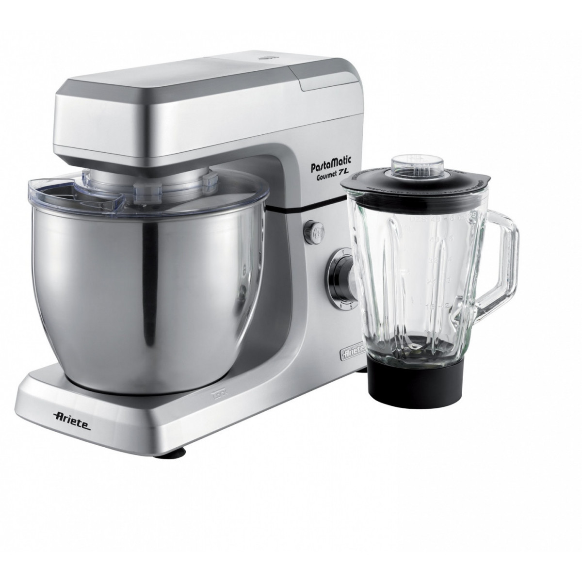 Ariete Pastamatic Gourmet 7L. Capacità ciotola: 7 L, Colore del prodotto: Acciaio inossidabile, Tipo di controllo: Manopola. Materiale ciotola: Acciaio inossidabile, Bicchiere frullatore: Vetro. Potenza: 2100 W