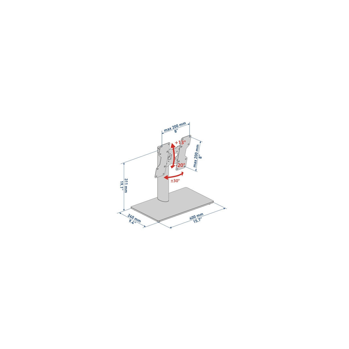L’elegante base in vetro temperato garantisce stabilità al prodotto, la colonna in alluminio è dotata di un pratico sistema nascondi fili all’interno della quale potete fare passare tutti i cavi in modo da creare un ambiente TV ordinato e moderno.
