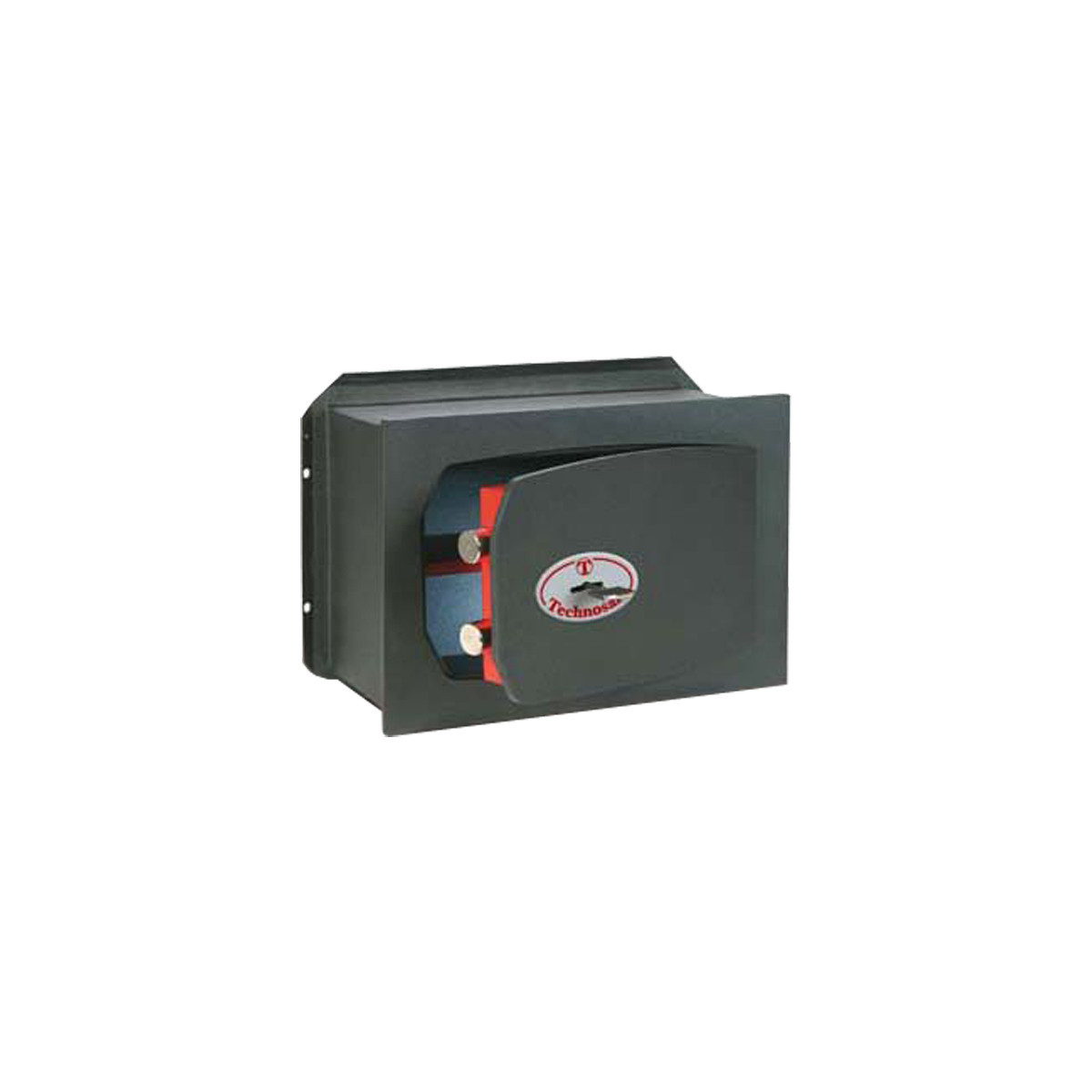 Technomax Casseforti a muro TK. Frontale e porta monoblocco spessore 8 mm., tagliati al laser. Serratura con chiave a doppia mappa a 6 leve. Catenacci nichelati girevoli anti-taglio da mm 18. Verniciatura con polveri termoindurenti. Protezione al meccanismo della serratura con piastrina in acciaio al manganese.