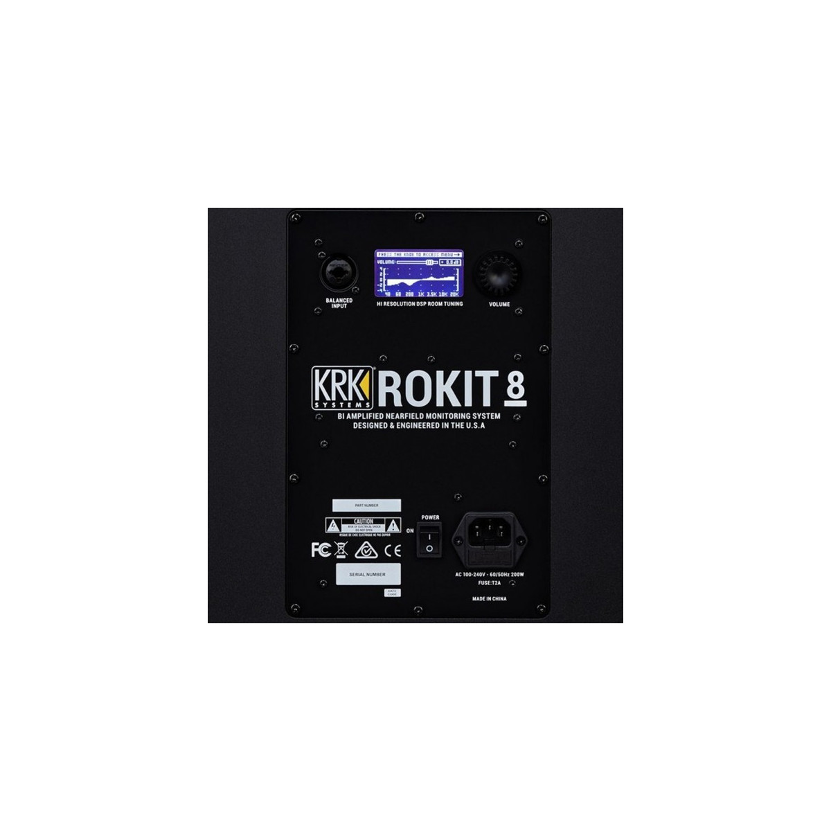 KRK Rokit RP8 G4. Utilizzo raccomandato: Studio. Tipo di speaker: 2-vie, Sistema audio: 1.0 canali, Numero di driver: 2. Tecnologia di connessione: Cablato. Potenza in uscita (RMS): 203 W, Range di frequenza: 36 - 40000 Hz, Impedenza: 51200 Ω. Colore del prodotto: Nero