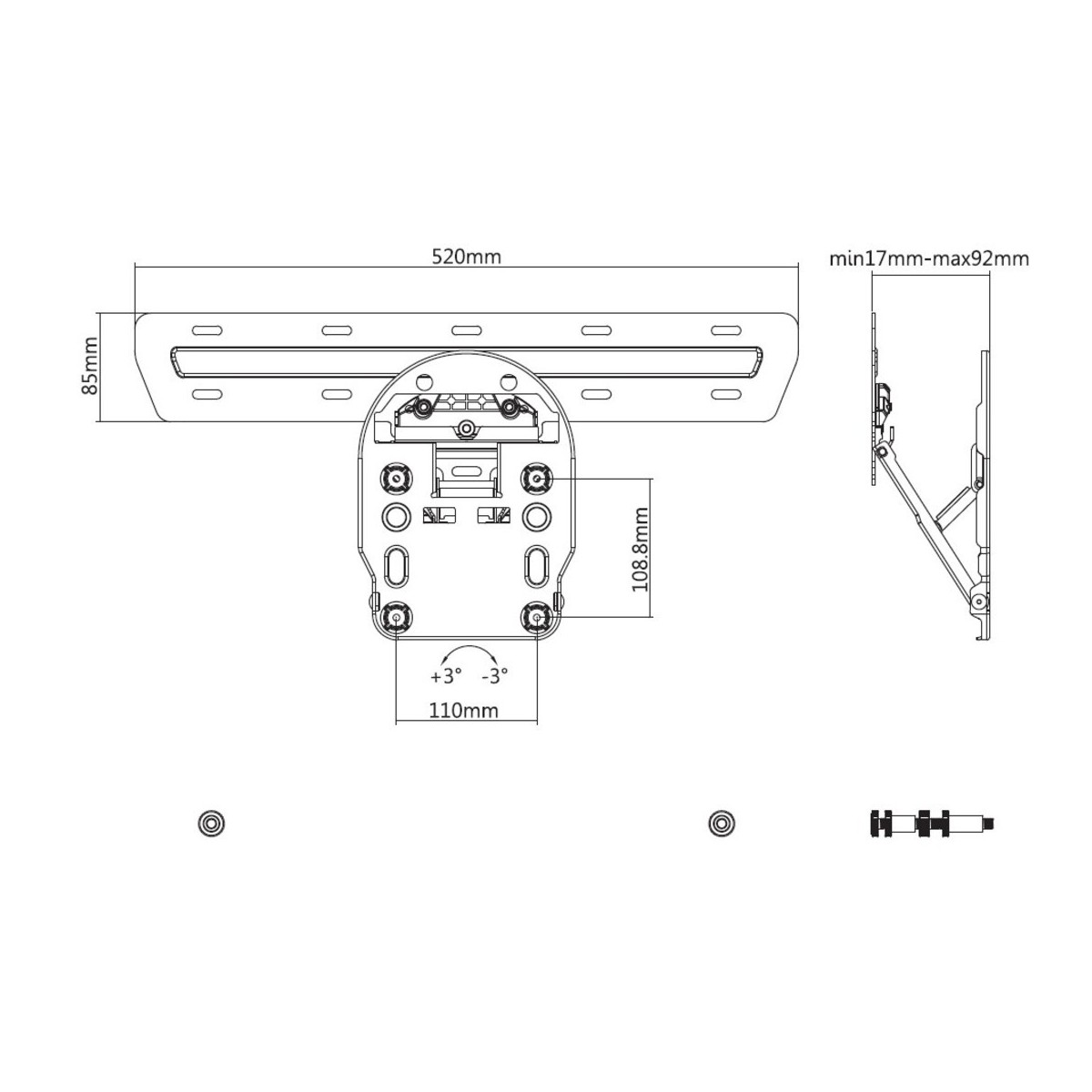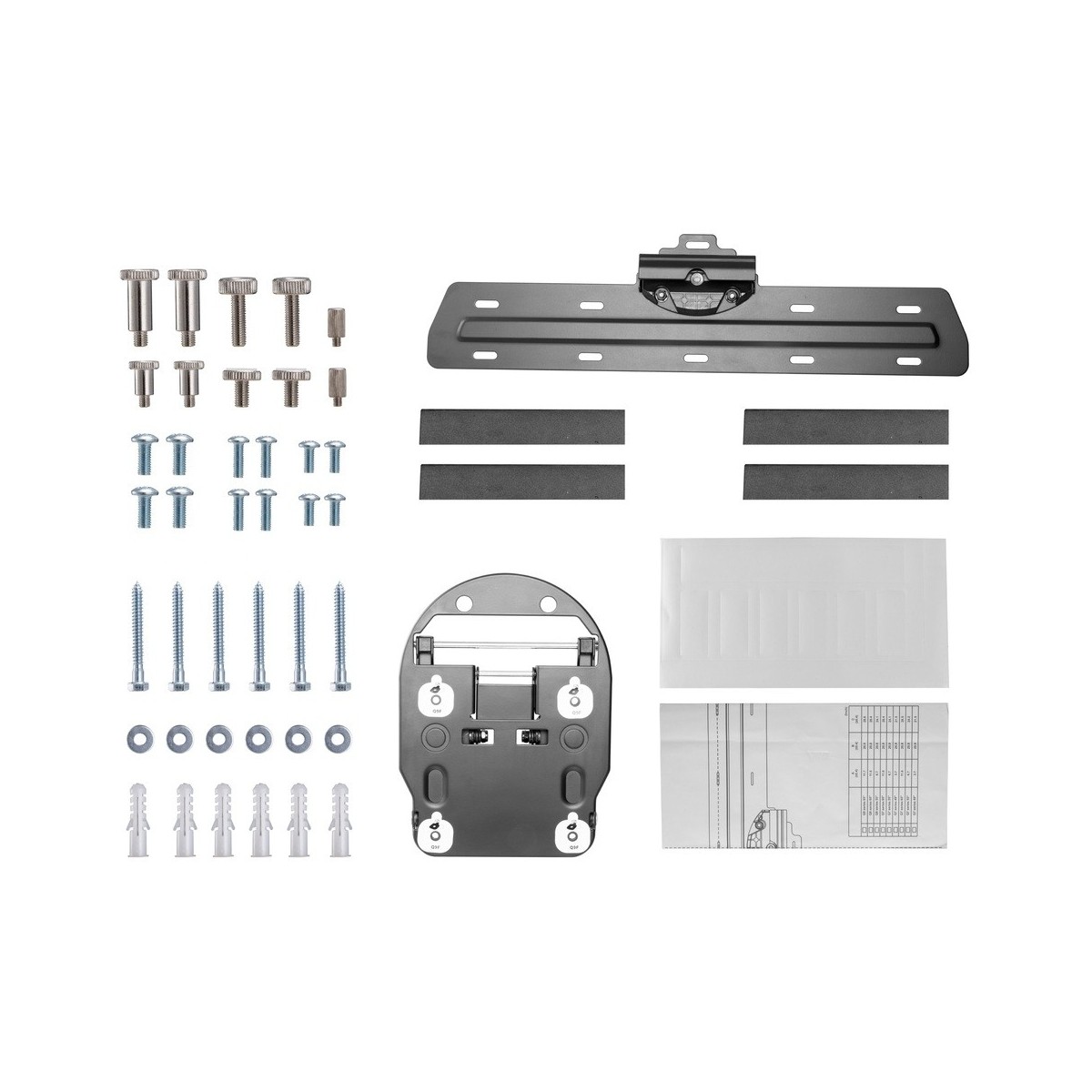 Multibrackets 5464. Peso massimo (capacità): 50 kg, Capienza minima dimensioni dello schermo: 124,5 cm (49"), Capienza massima dimensioni dello schermo: 165,1 cm (65"). Inclinazione: -3 - 3°, Distanza dalla parete (min): 1,7 cm, Distanza dal muro (massima): 9,2 cm. Colore del prodotto: Nero