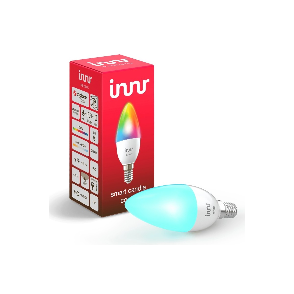 Innr Lighting RB 250 C. Tipo: Lampadina intelligente, Colore del prodotto: Bianco, Tipo di lampada: LED. Tensione di ingresso AC: 220 - 240 V, Frequenza di ingresso AC: 50/60 Hz. Altezza: 110 mm, Diametro: 3,8 cm. Tipo di imballo: Scatola. Quantità per pacco: 1 pezzo(i)
