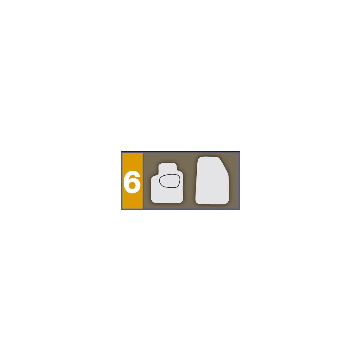 Serie completa 4 tappeti (anteriori+posteriori) in moquette made in Italy. Design ottimizzato per una perfetta adattabilità al pianale. Provvisti sul lato guida, nell'area sotto i pedali, di un elegante battitacco di rinforzo che protegge i tappeti dall'abrasione costante dei tacchi. Al fine di renderli più stabili e sicuri ed evitare che scivolino pericolosamente sotto la pedaliera, oltre al fondo ruvido con caratteristiche antislittamento viene applicato su tutto il perimetro inferiore dei tap peti un profilo in velcro che si aggrappa al pianale in moquette dell'auto. Colore nero.