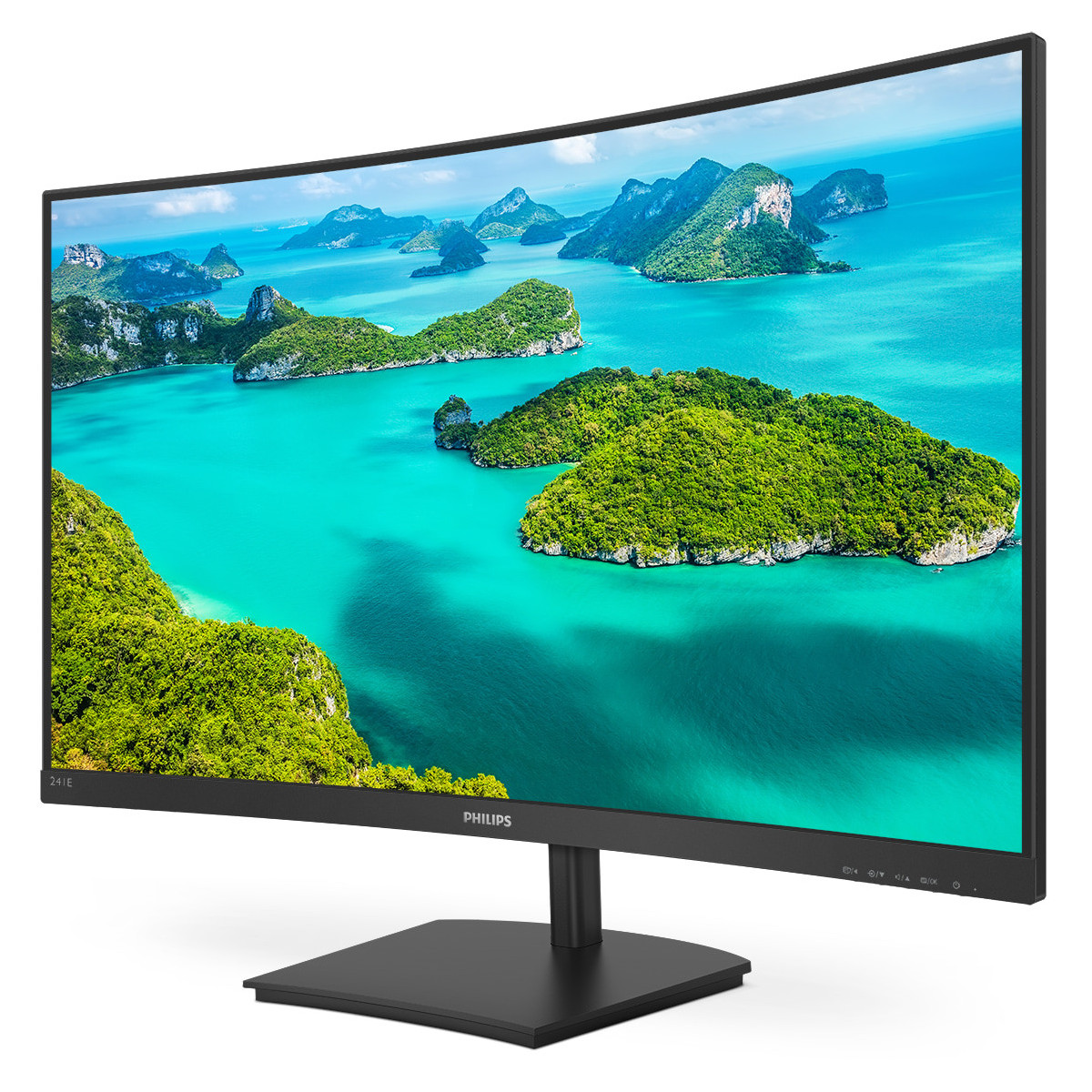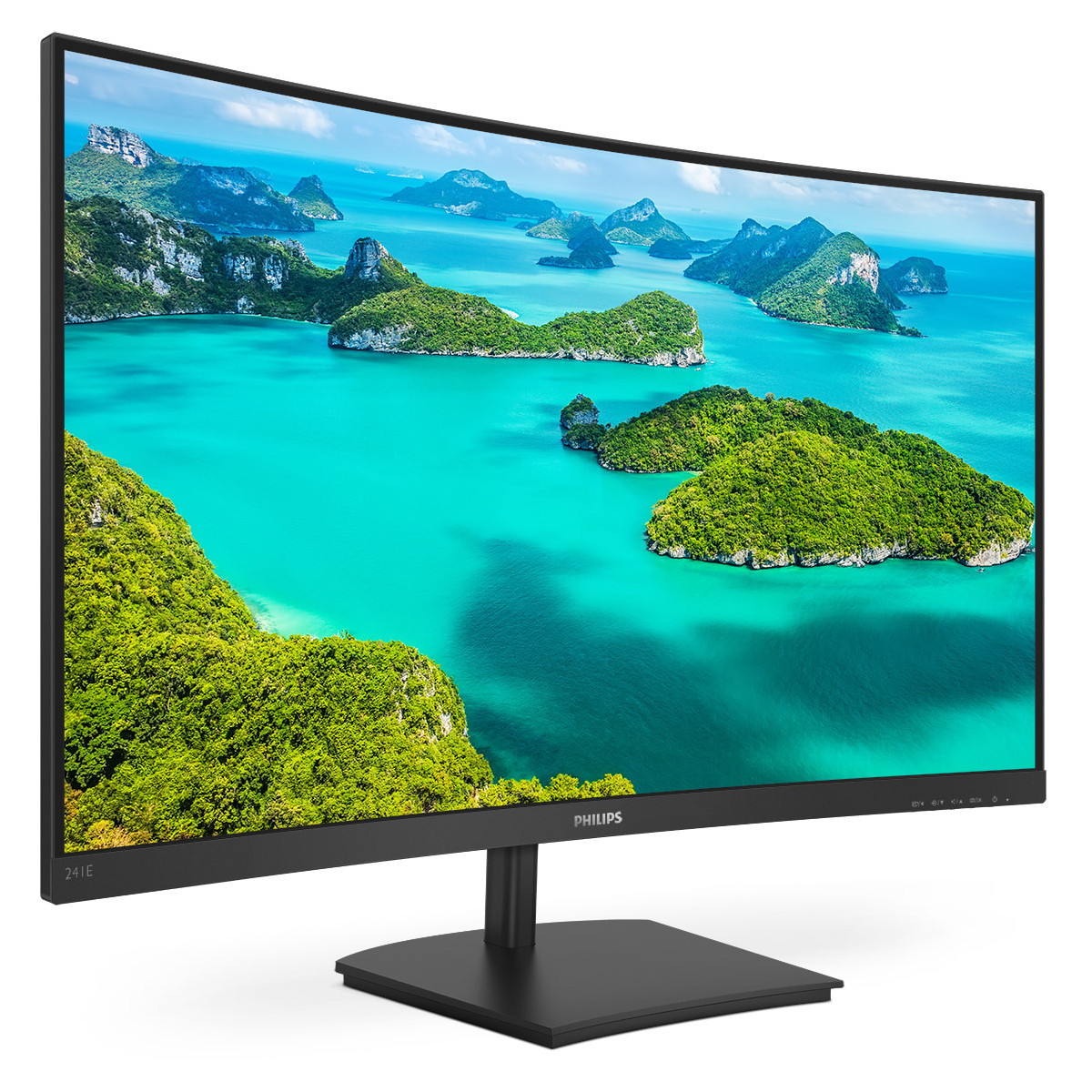 Philips E Line 241E1SCA/00. Dimensioni schermo: 59,9 cm (23.6"), Risoluzione del display: 1920 x 1080 Pixel, Tipologia HD: Full HD, Tecnologia display: LCD, Superficie display: Opaco, Tempo di risposta: 4 ms, Rapporto d'aspetto nativo: 16:9, Angolo di visualizzazione (orizzontale): 178°, Angolo di visualizzazione (verticale): 178°. Altoparlanti incorporati. Montaggio standard VESA. Colore del prodotto: Nero
