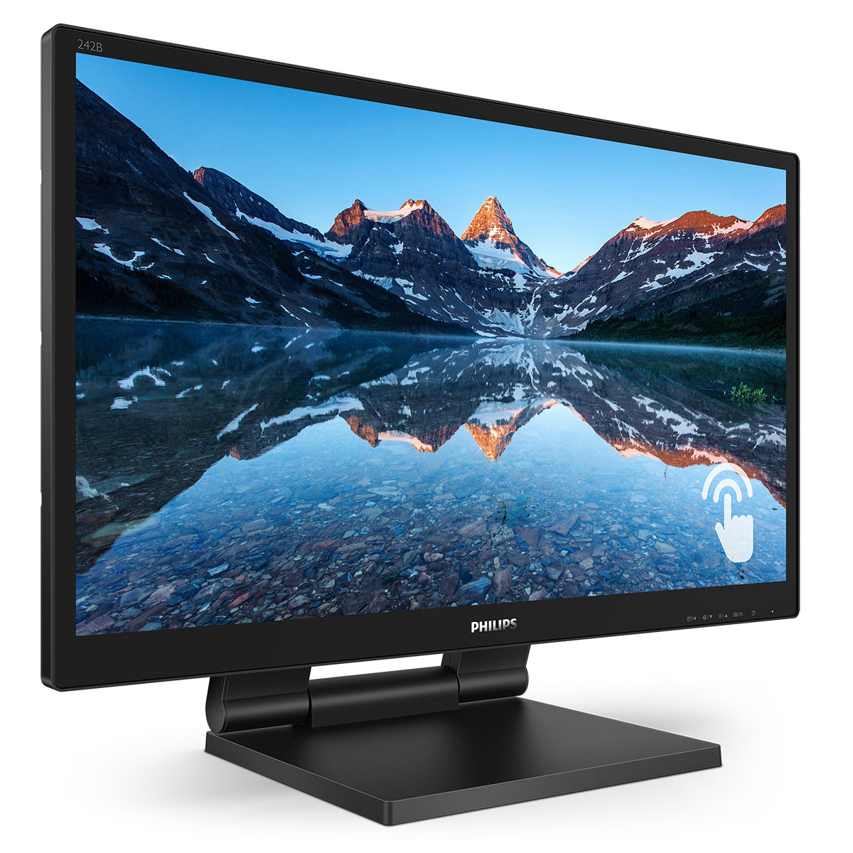 Philips Monitor LCD con SmoothTouch 242B9T/00. Dimensioni schermo: 60,5 cm (23.8"), Risoluzione del display: 1920 x 1080 Pixel, Tipologia HD: Full HD, Tecnologia display: IPS, Tempo di risposta: 5 ms, Rapporto d'aspetto nativo: 16:9, Angolo di visualizzazione (orizzontale): 178°, Angolo di visualizzazione (verticale): 178°. Altoparlanti incorporati. Hub USB integrato, Versione dell'hub USB: 3.2 Gen 1 (3.1 Gen 1). Montaggio standard VESA, Regolazione altezza. Certificazione Energy Star, Colore del prodotto: Nero