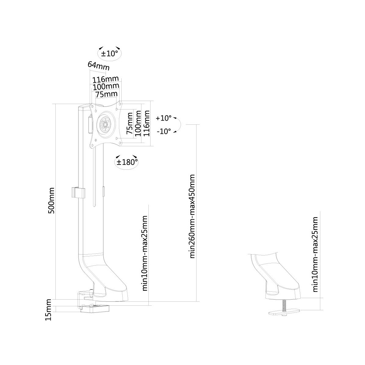 | Angolo di rotazione | -10 - 10° |