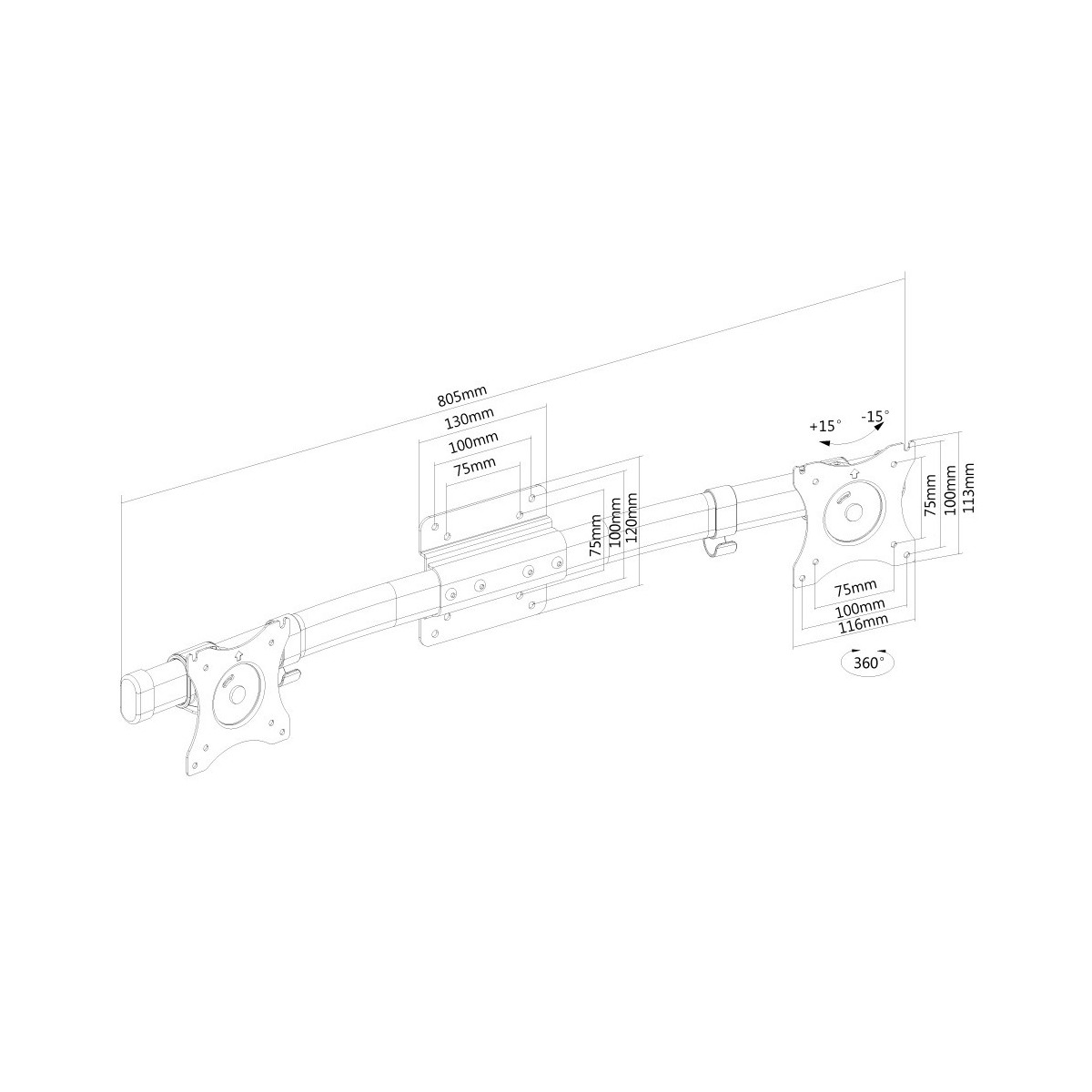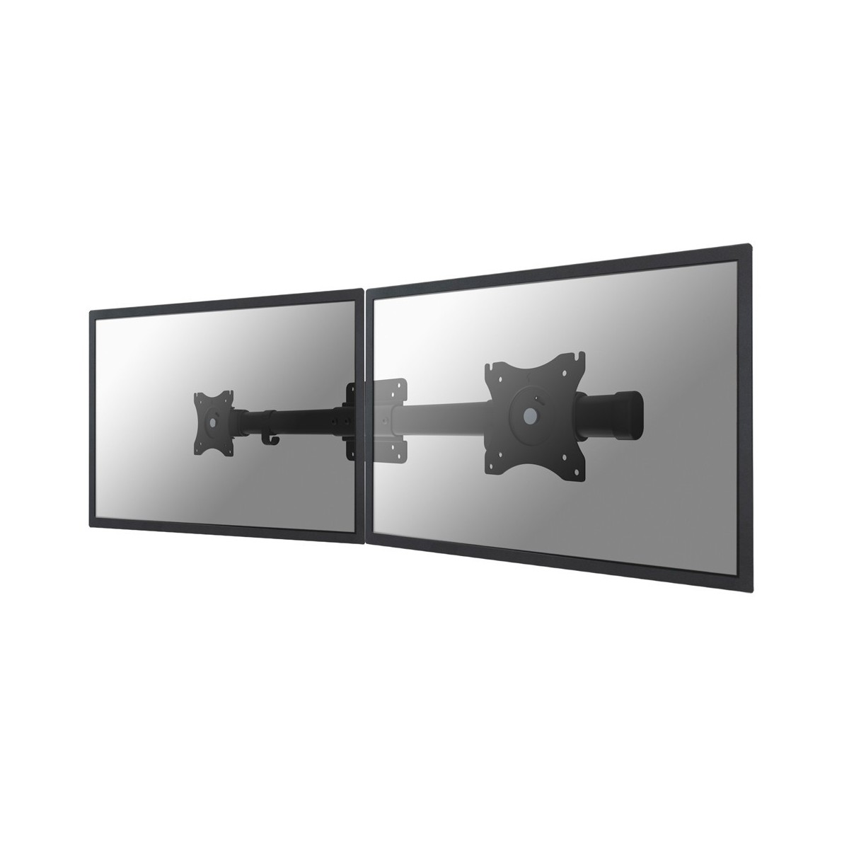 Supporto da parete dual monitor NewStar, modello FPMA-CB100BLACK è un supporto di montaggio schermo doppia permettendo due monitor / schermi piatti da montare sulla parete. schermate diapositiva da sinistra a destra per adattarle allo schermo side-by-side. Fornisce regolazioni dello schermo indipendenti e liberamente spostare i monitor lungo il binario orizzontale senza l'utilizzo di attrezzi.