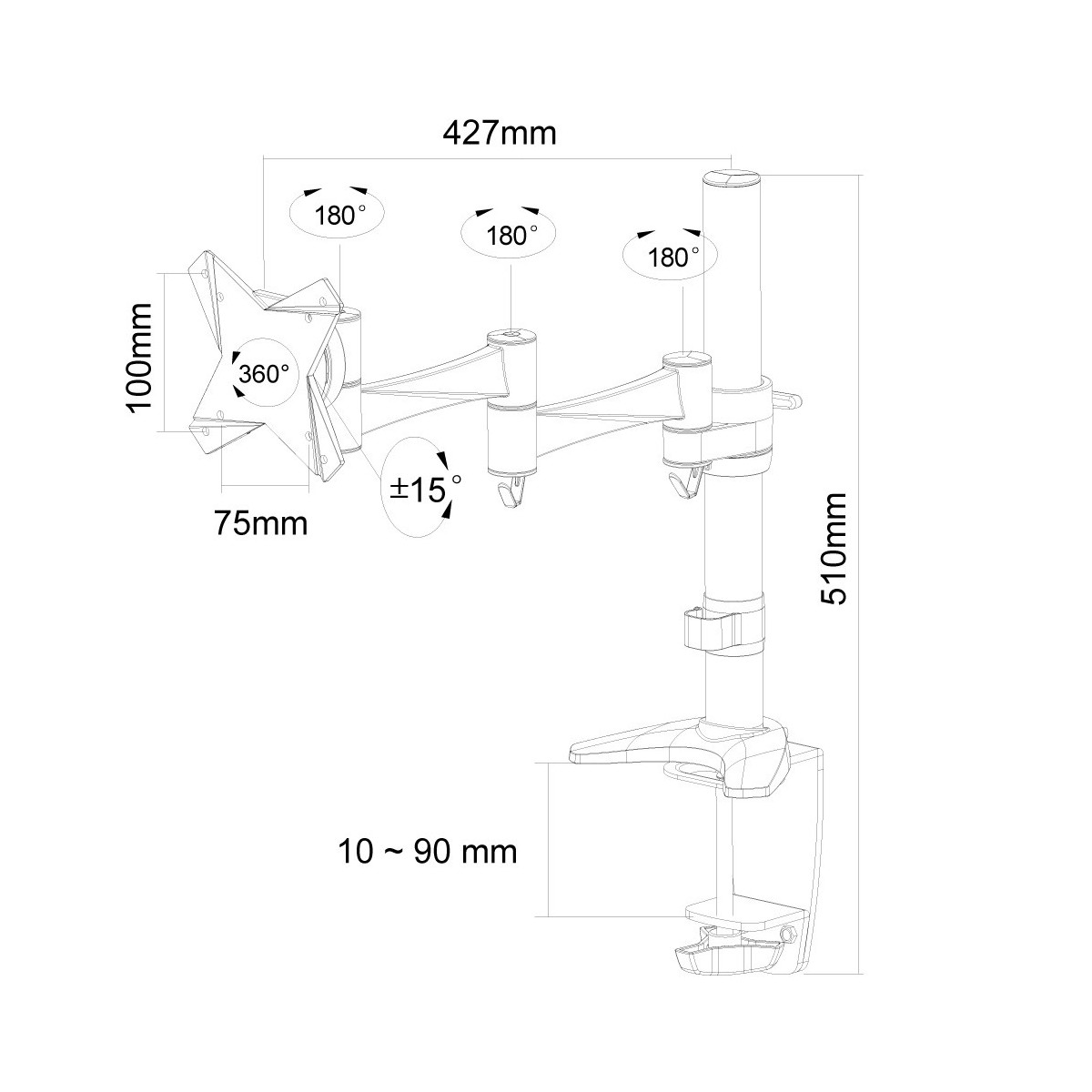 Utilizzate un braccio porta monitor per sfruttare pienamente le capacità del vostro schermo. Il braccio è facile da regolare in altezza e profondità. È inoltre possibile inclinare lo schermo in senso verticale, orizzontale e farlo ruotare; questo crea la posizione ergonomica di lavoro ideale riducendo il rischio di mal di schiena e al collo. I cavi possono essere collocati sul lato inferiore del braccio.