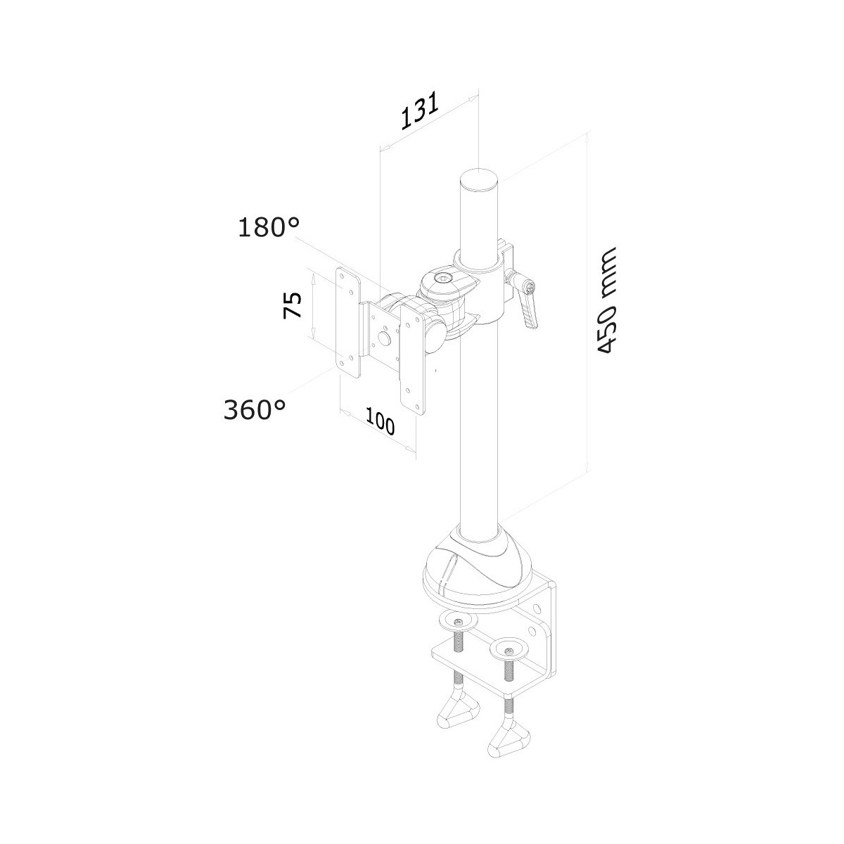 Utilizzate un braccio porta monitor per sfruttare pienamente le capacità del vostro schermo. Il braccio è facile da regolare in altezza. È inoltre possibile inclinare lo schermo in senso verticale, orizzontale e farlo ruotare; questo crea la posizione ergonomica di lavoro ideale riducendo il rischio di mal di schiena e al collo. I cavi possono essere collocati sul palo verticale.