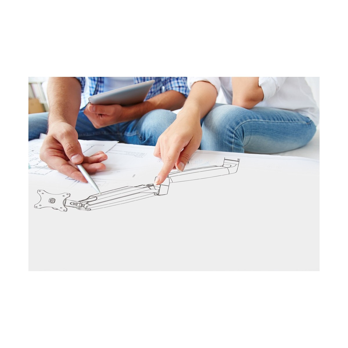 Utilizzate un braccio porta monitor per sfruttare pienamente le capacità del vostro schermo. Il braccio è facile da regolare in altezza e profondità. È inoltre possibile inclinare lo schermo in senso verticale, orizzontale e farlo ruotare; questo crea la posizione ergonomica di lavoro ideale riducendo il rischio di mal di schiena e al collo. I cavi possono essere collocati sulla parte inferiore del braccio.