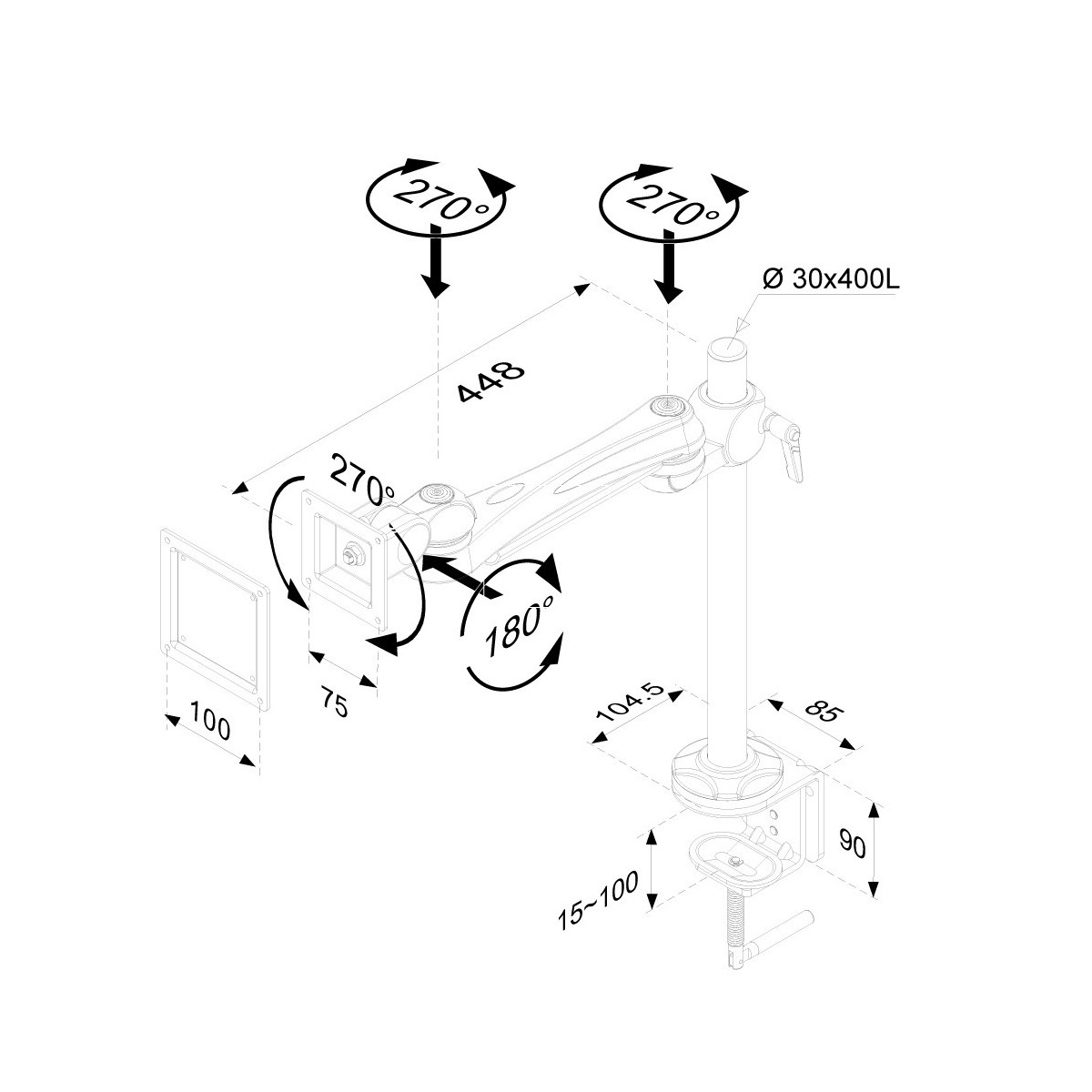 Utilizzate un braccio porta monitor per sfruttare pienamente le capacità del vostro schermo. Il braccio è facile da regolare in altezza e profondità. È inoltre possibile inclinare lo schermo in senso verticale, orizzontale e farlo ruotare; questo crea la posizione ergonomica di lavoro ideale riducendo il rischio di mal di schiena e al collo. I cavi possono essere collocati sulla parte inferiore del braccio e su quella verticale del palo.