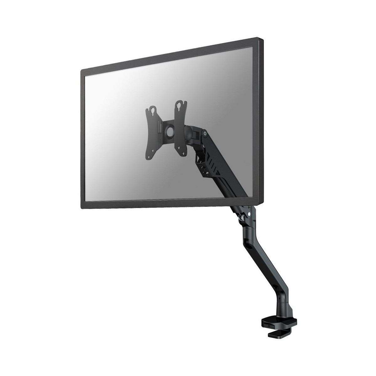 Questo braccio porta monitor NewStar, modello FPMA-D750BLACK consente di collegare uno schermo LCD/LED/TFT su di una scrivania con la modalità di fissaggio su piano attraverso un morsetto o vite centrale (entrambe sono incluse).