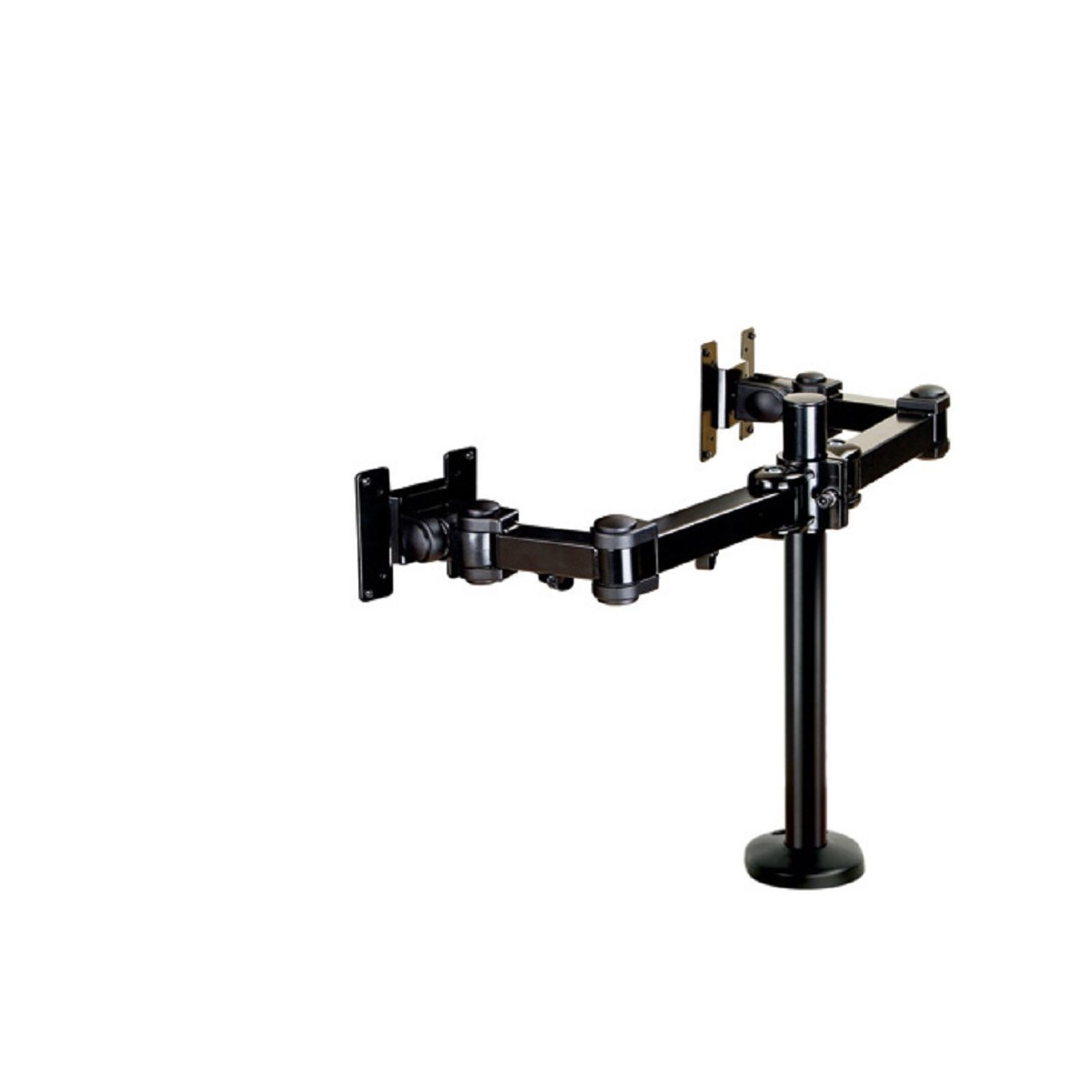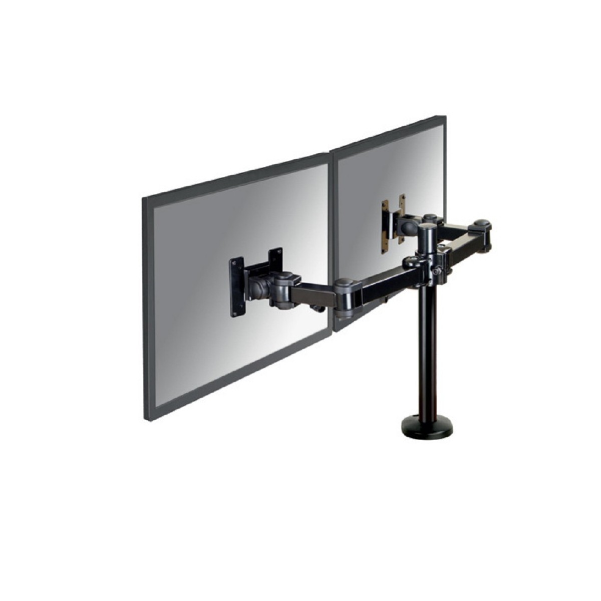 Questo braccio porta monitor NewStar, modello FPMA-D960DG consente di collegare due schermi LCD/LED/TFT su di una scrivania con la modalità di fissaggio su piano attraverso una vite centrale.