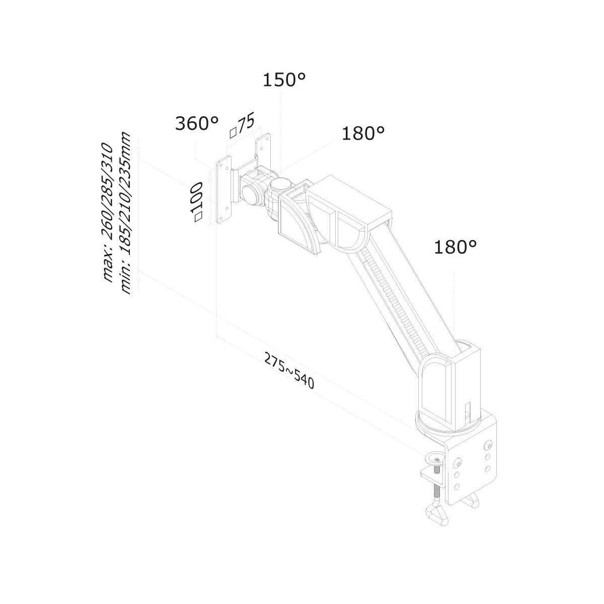 Utilizzate un braccio porta monitor per sfruttare pienamente le capacità del vostro schermo. Il braccio è facile da regolare in altezza e profondità. È inoltre possibile inclinare lo schermo in senso verticale, orizzontale e farlo ruotare; questo crea la posizione ergonomica di lavoro ideale riducendo il rischio di mal di schiena e al collo. I cavi possono essere collocati sul lato inferiore del braccio.