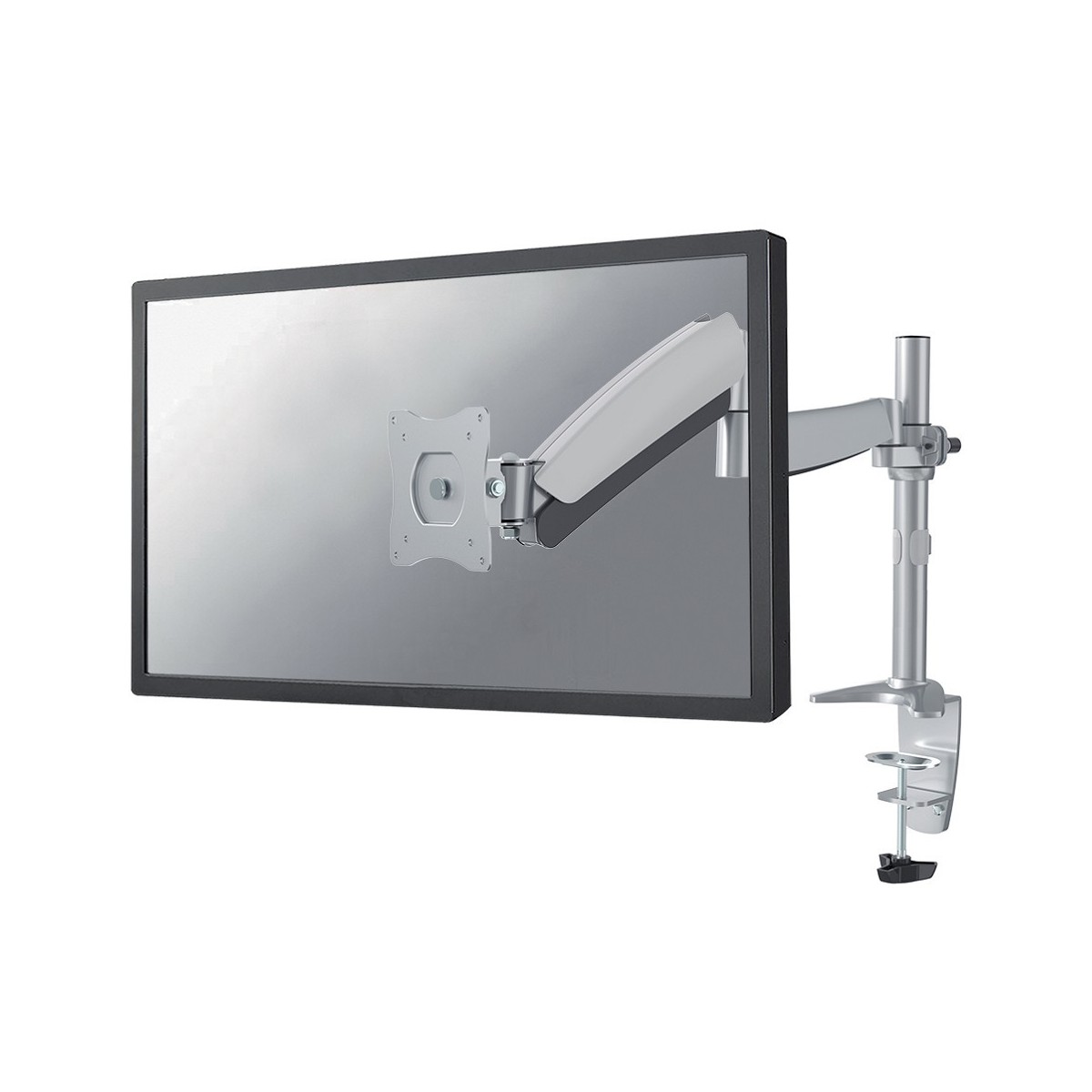 Questo braccio porta monitor NewStar, modello FPMA-D950 consente di collegare uno schermo LCD/LED/TFT su di una scrivania con la modalità di fissaggio su piano attraverso un morsetto o vite centrale (entrambe sono incluse).