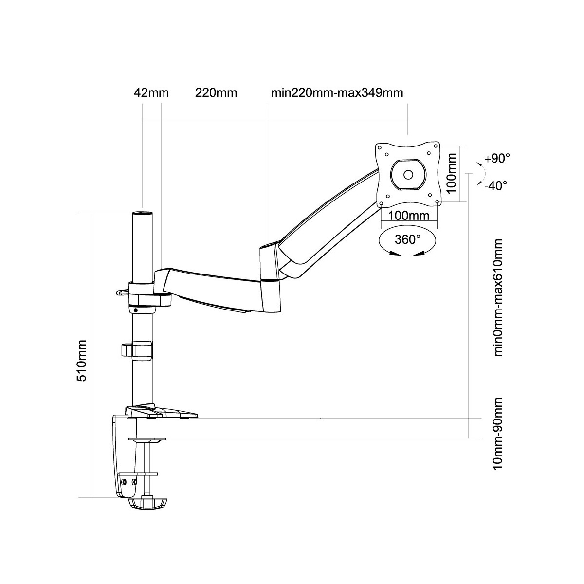 Utilizzate un braccio porta monitor per sfruttare pienamente le capacità del vostro schermo. Il braccio è facile da regolare in altezza e profondità. È inoltre possibile inclinare lo schermo in senso verticale, orizzontale e farlo ruotare; questo crea la posizione ergonomica di lavoro ideale riducendo il rischio di mal di schiena e al collo. I cavi possono essere collocati sulla parte inferiore del braccio.