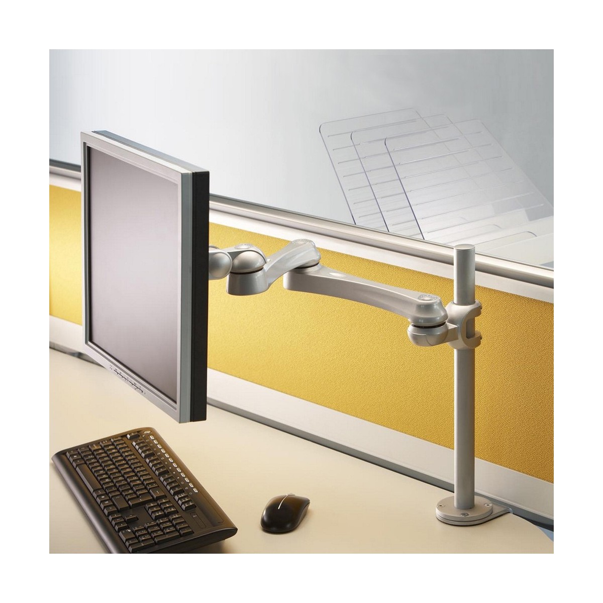 Utilizzate un braccio porta monitor per sfruttare pienamente le capacità del vostro schermo. Il braccio è facile da regolare in altezza e profondità. È inoltre possibile inclinare lo schermo in senso verticale, orizzontale e farlo ruotare; questo crea la posizione ergonomica di lavoro ideale riducendo il rischio di mal di schiena e al collo. I cavi possono essere collocati sulla parte inferiore del braccio e su quella verticale del palo.