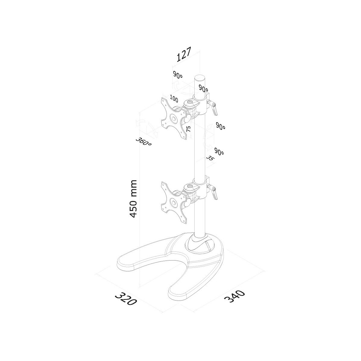 Utilizzate un braccio porta monitor per sfruttare pienamente le capacità del vostro schermo. Il braccio è facile da regolare in altezza. È inoltre possibile inclinare lo schermo in senso verticale, orizzontale e farlo ruotare; questo crea la posizione ergonomica di lavoro ideale riducendo il rischio di mal di schiena e al collo. I cavi possono essere collocati sulla parte posteriore della colonna.