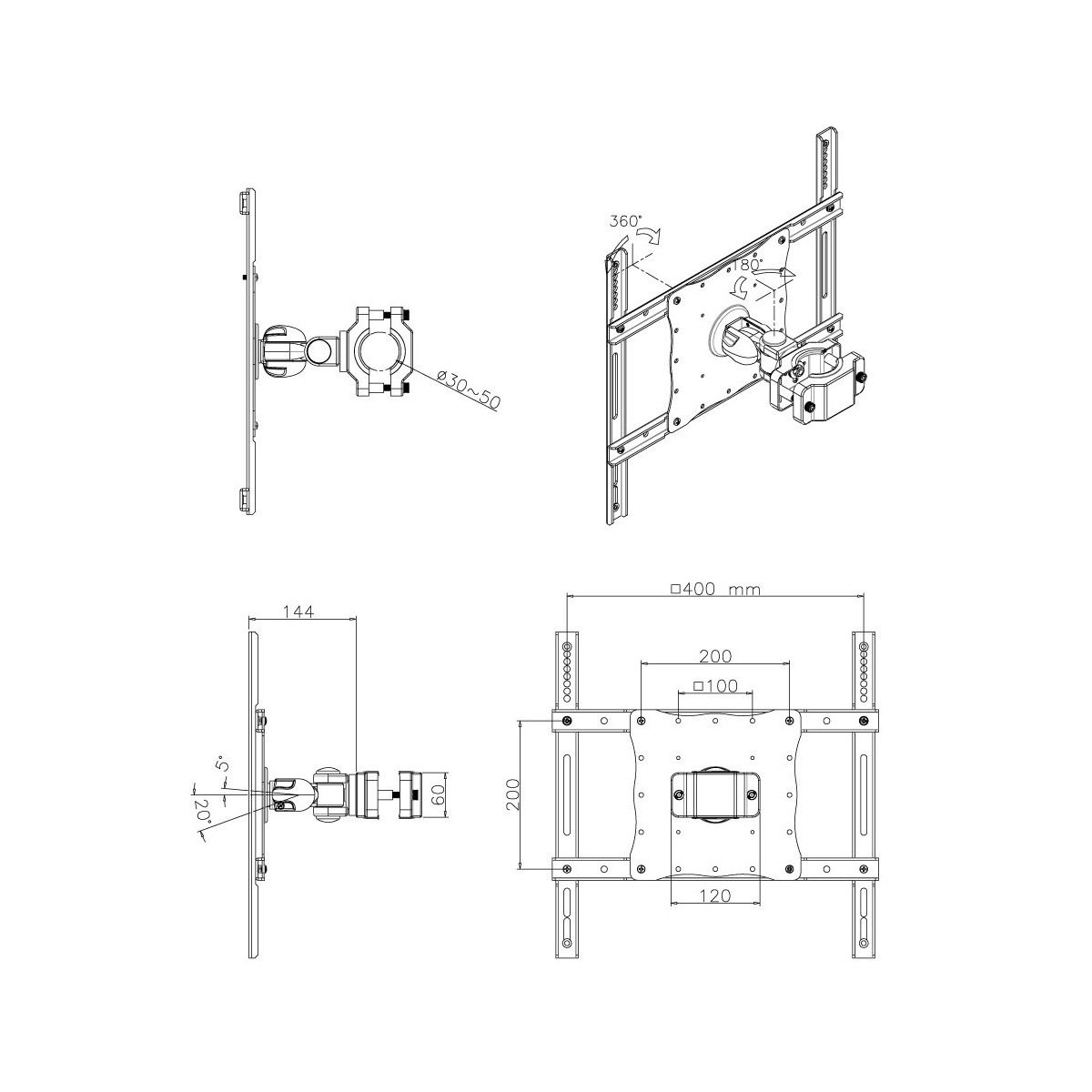 Utilizzate un palo di sostegno per sfruttare pienamente le capacità del vostro schermo. Il braccio è facile da regolare. È inoltre possibile inclinare lo schermo in senso verticale, orizzontale e farlo ruotare. Questo crea l'angolo di visione ideale riducendo il rischio di mal di schiena e al collo. Questo supporto è adatto per diametri da 30 a 50 mm.
