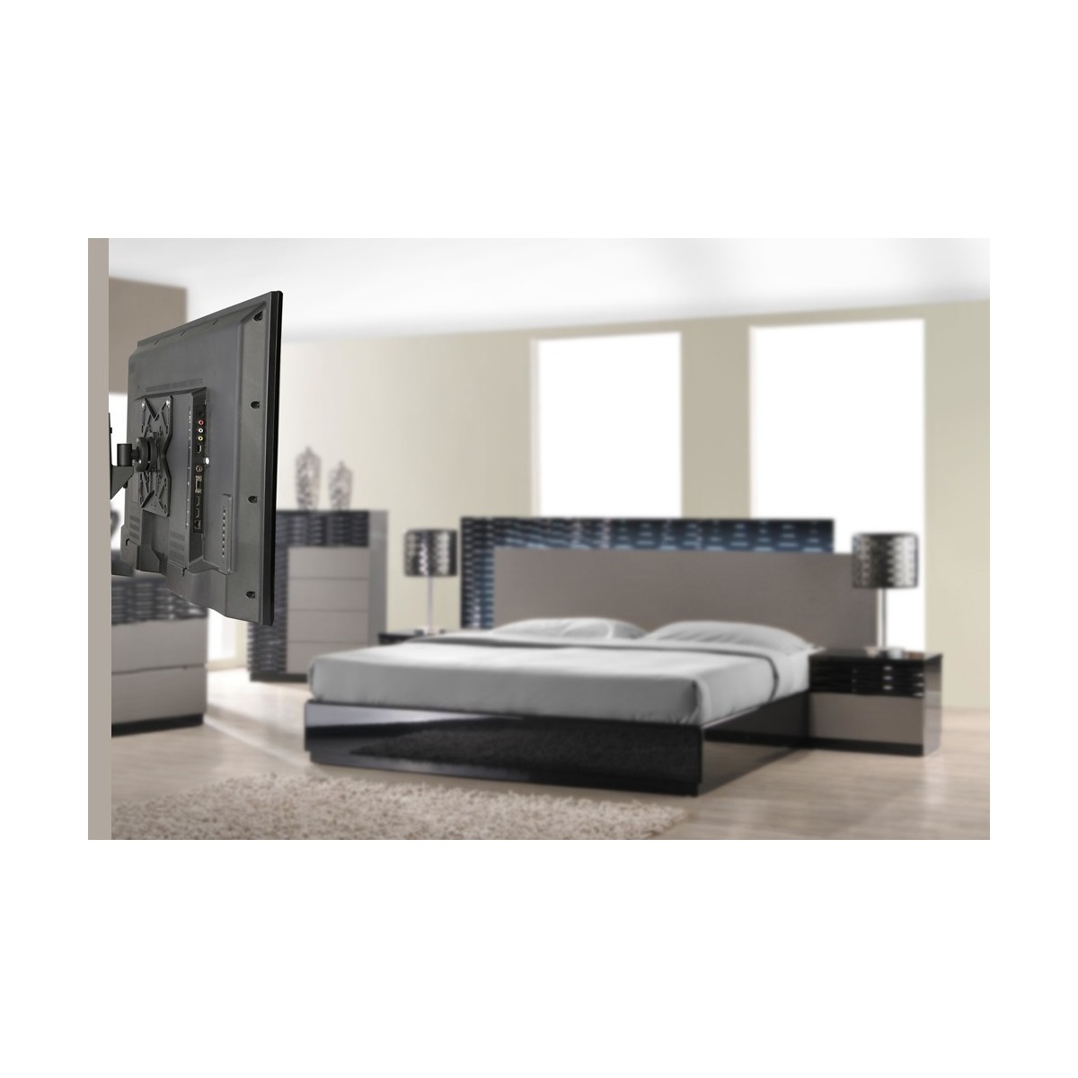 Utilizzate un montaggio a parete per sfruttare pienamente le capacità del vostro schermo. Il montaggio a parete è facile da regolare. È inoltre possibile inclinare lo schermo in senso verticale, orizzontale e farlo ruotare. Questo crea l'angolo di visione ideale riducendo il rischio di mal di schiena e al collo. I cavi possono essere collocati sul lato inferiore del braccio.