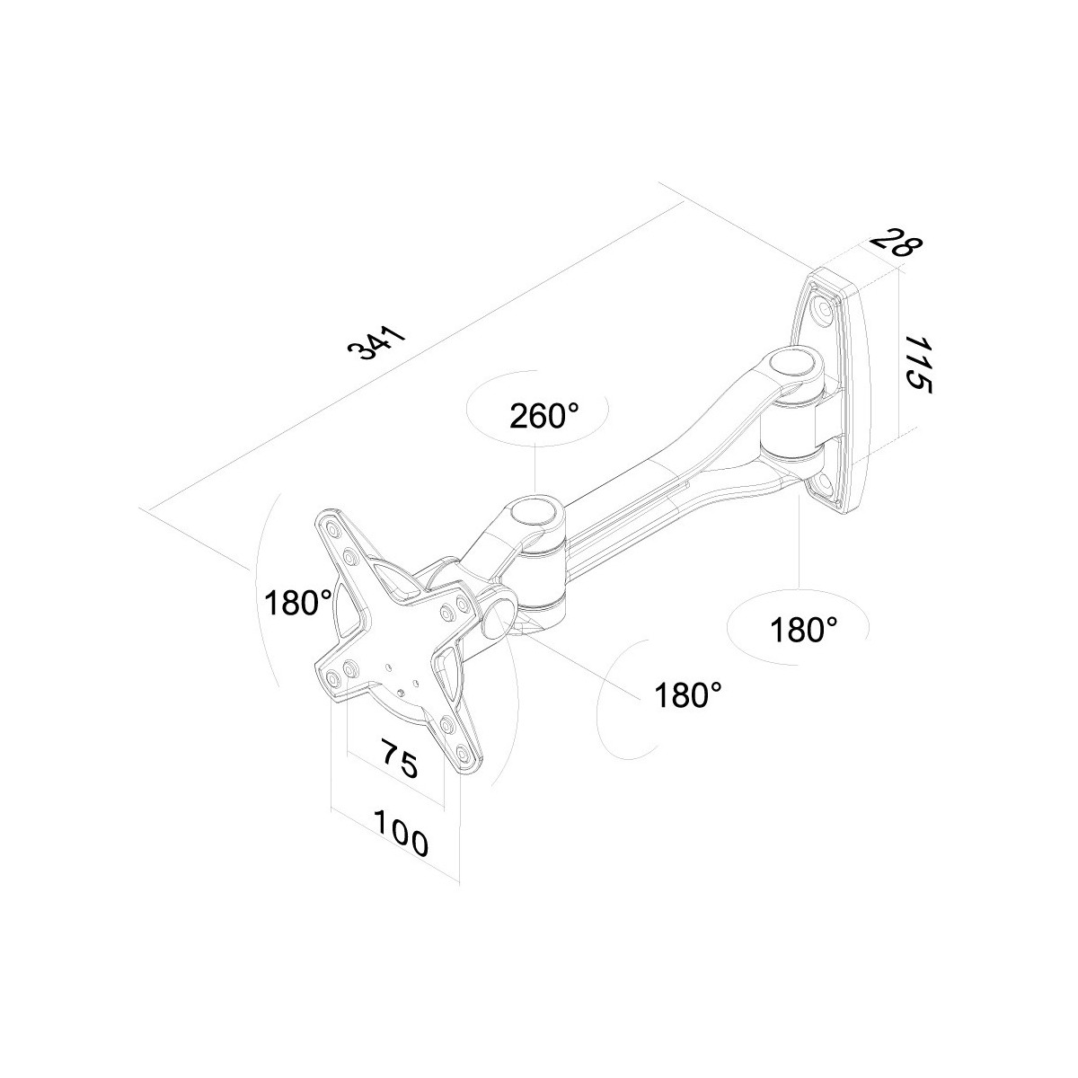 Il supporto FPMA-W1020 ha due punti di articolazione ed è adatto a schermi fino a 30" (76 cm) con una capacità massima di trasporto di12 kg. Questo prodotto è adatto per schermi con fori VESA modello 75x75 o 100x100 mm. Per una diversa (più grande) foratura, si può combinare con una delle nostre piastre di adattamento VESA.