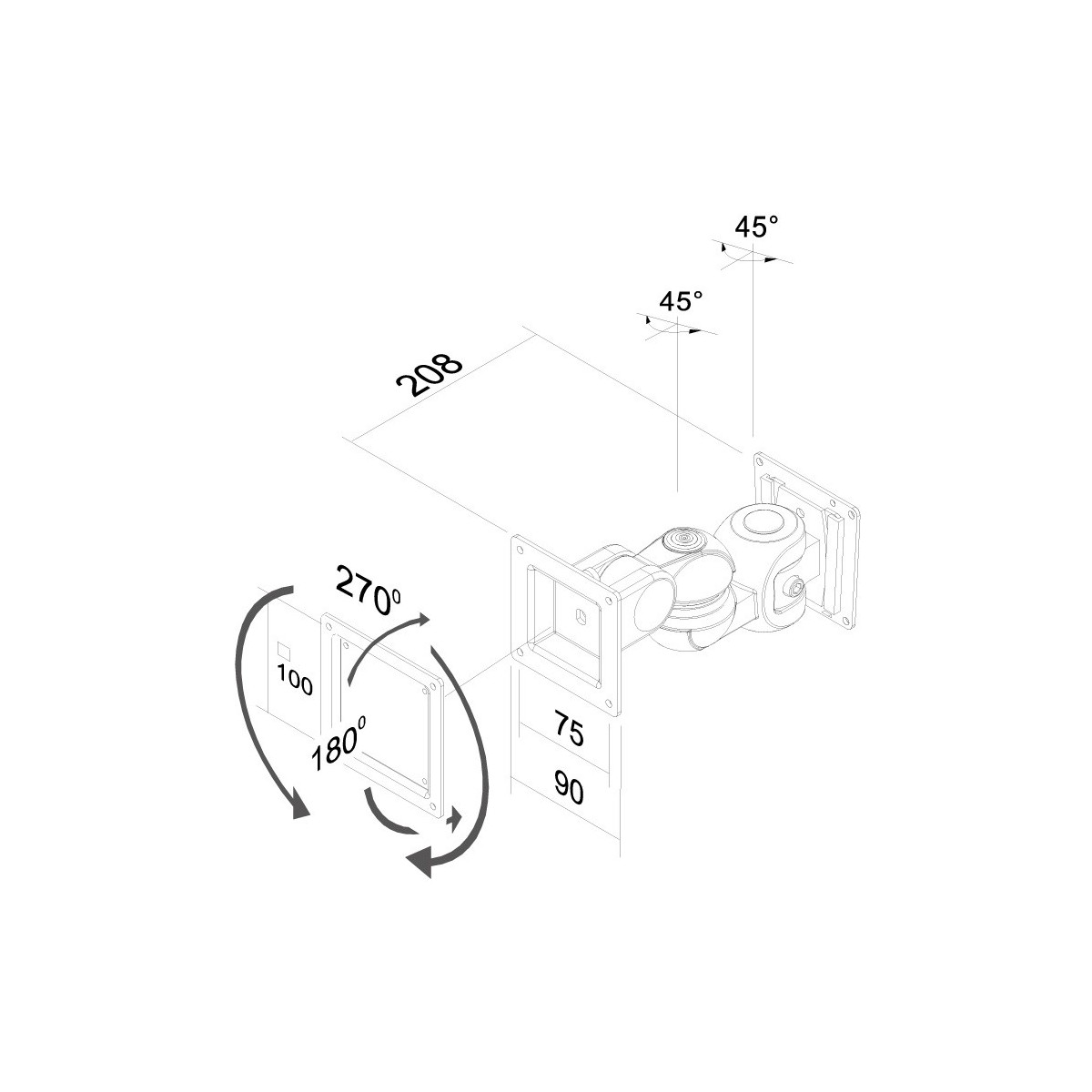 Il supporto FPMA-W910 ha un punto di articolazione ed è adatto a schermi fino a 30" (76 cm) con una capacità massima di trasporto di 12 kg. Questo prodotto è adatto per schermi con fori VESA modello 75x75, 100x100 mm. Per una diversa (più grande) foratura, si può combinare con una delle nostre piastre di adattamento VESA.