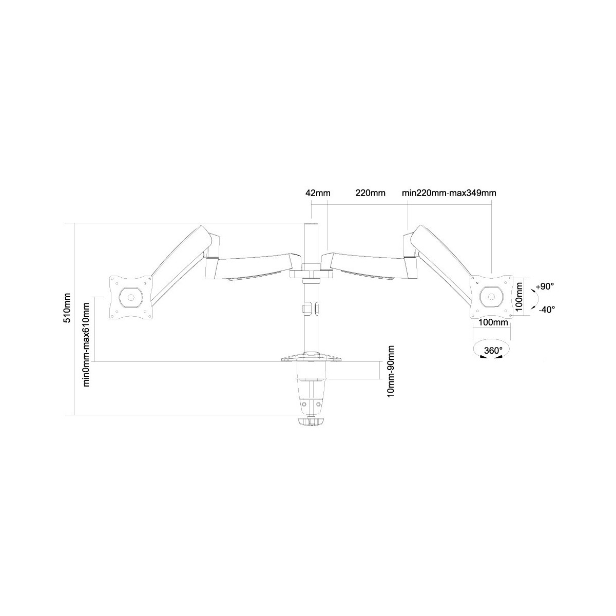 Utilizzate un braccio porta monitor per sfruttare pienamente le capacità del vostro schermo. Il braccio è facile da regolare in altezza e profondità. È inoltre possibile inclinare lo schermo in senso verticale, orizzontale e farlo ruotare; questo crea la posizione ergonomica di lavoro ideale riducendo il rischio di mal di schiena e al collo. I cavi possono essere collocati sulla parte inferiore del braccio.