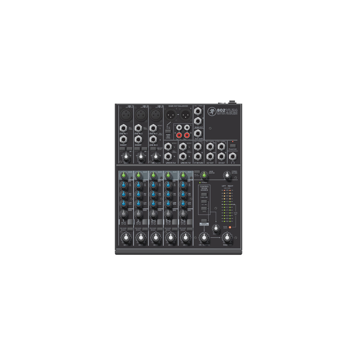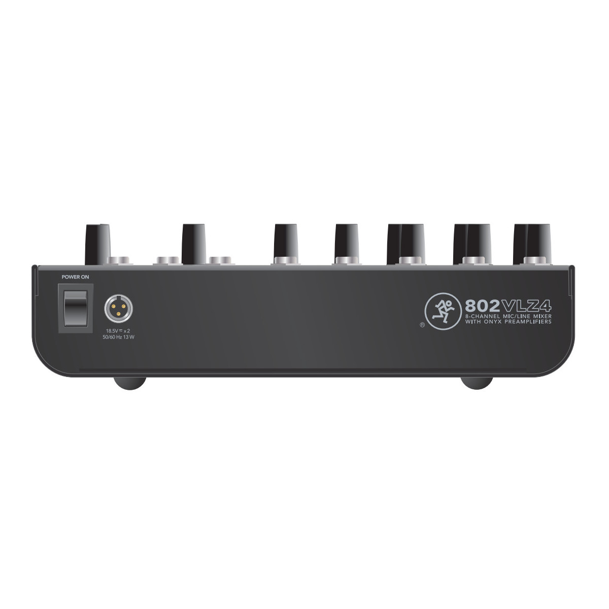Mackie 802VLZ4. Quantità di canali: 8 canali, Range di frequenza: 20 - 20000 Hz, Crosstalk (1kHz): 100 dB. Impedenza ingresso: 17000 Ω, Impedenza ingresso microfono: 2550 Ω. Distorsione armonica totale (THD): 0,001%. Consumi: 13 W. Larghezza: 227 mm, Profondità: 273 mm, Altezza: 47 mm