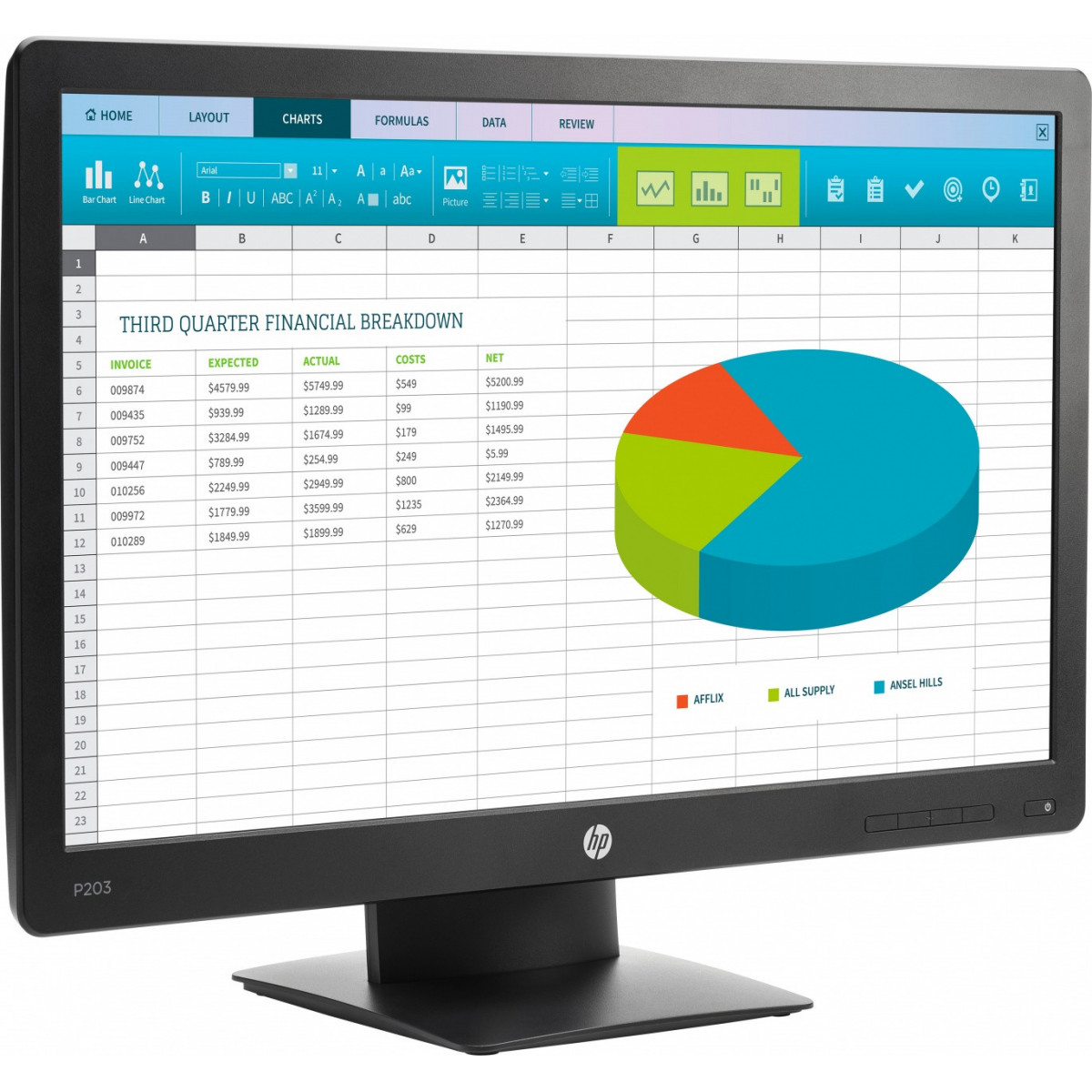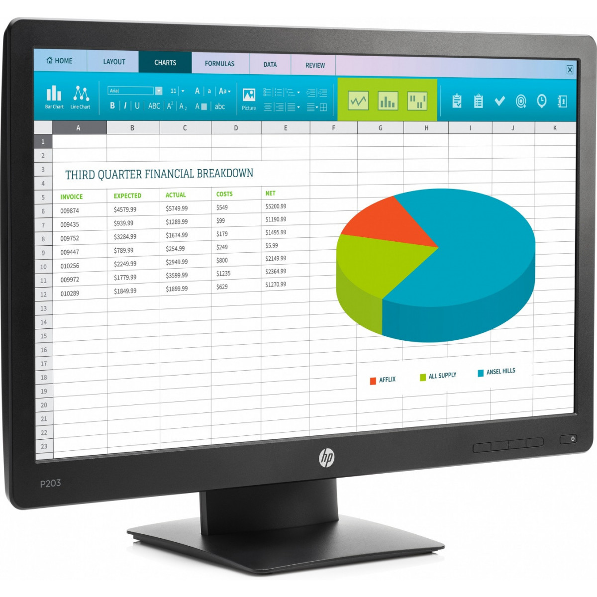 Abbinate il vostro PC HP professionale ad HP ProDisplay P203 50.8 cm (20") Monitor, uno schermo elegante che offre funzioni di presentazione essenziali e connettività avanzata per la vostra produttività quotidiana a un prezzo estremamente conveniente.