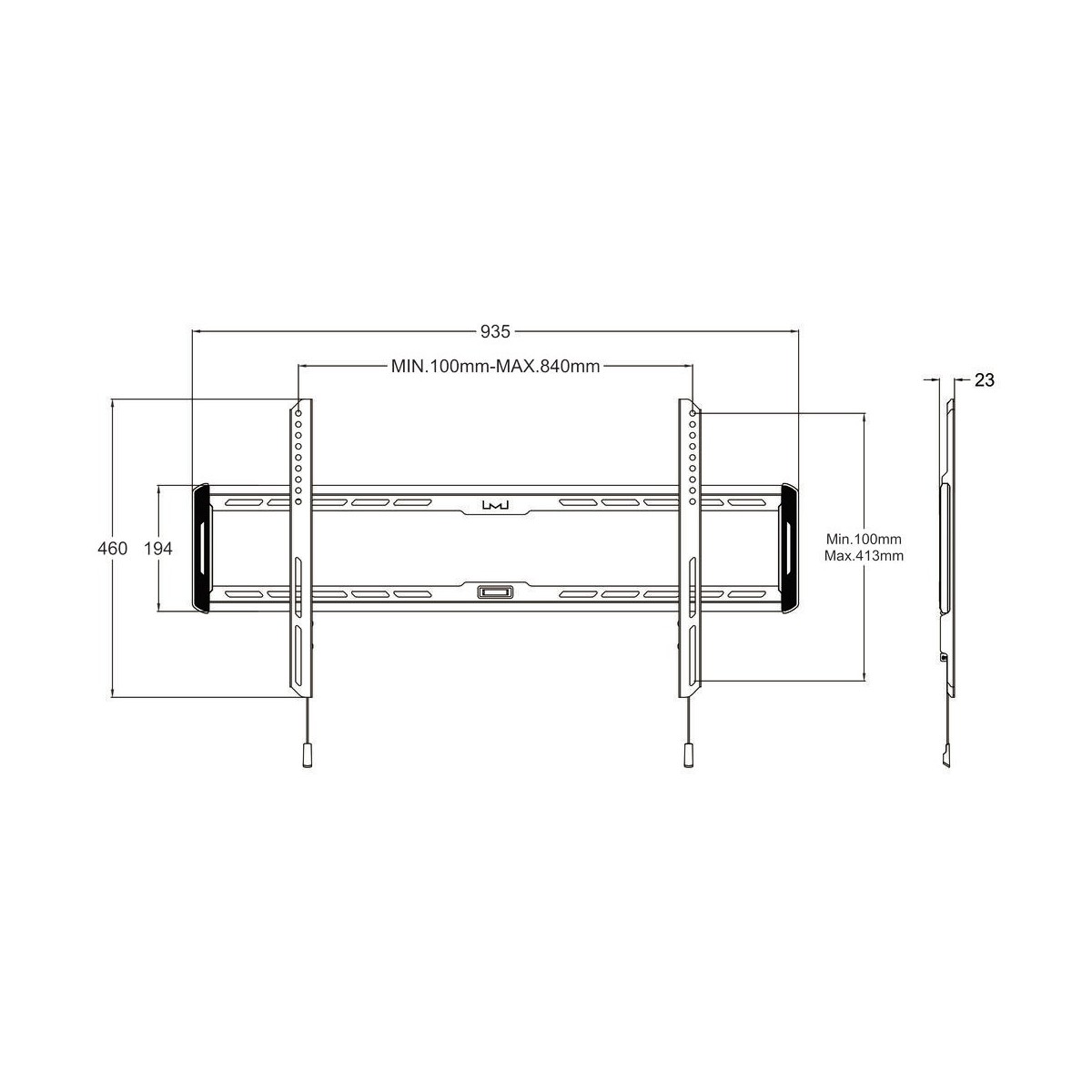 Multibrackets 1015. Peso massimo (capacità): 60 kg, Capienza minima dimensioni dello schermo: 101,6 cm (40"), Capienza massima dimensioni dello schermo: 2,16 m (85"), Compatibilità interfaccia di montaggio (min): 300 x 200 mm, Compatibilità interfaccia di montaggio (max): 800 x 400 mm. Distanza dal muro (massima): 2,3 cm. Colore del prodotto: Nero