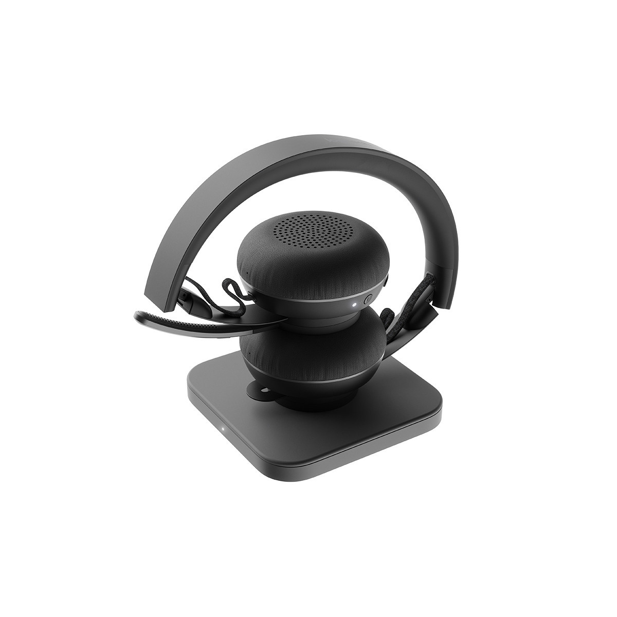 Cuffia con microfono dotata di certificazione MSFT Teams e progettata per l'uso in qualsiasi ambiente con prestazioni audio eccezionali, microfono flip-to-mute e ricarica wireless Qi.