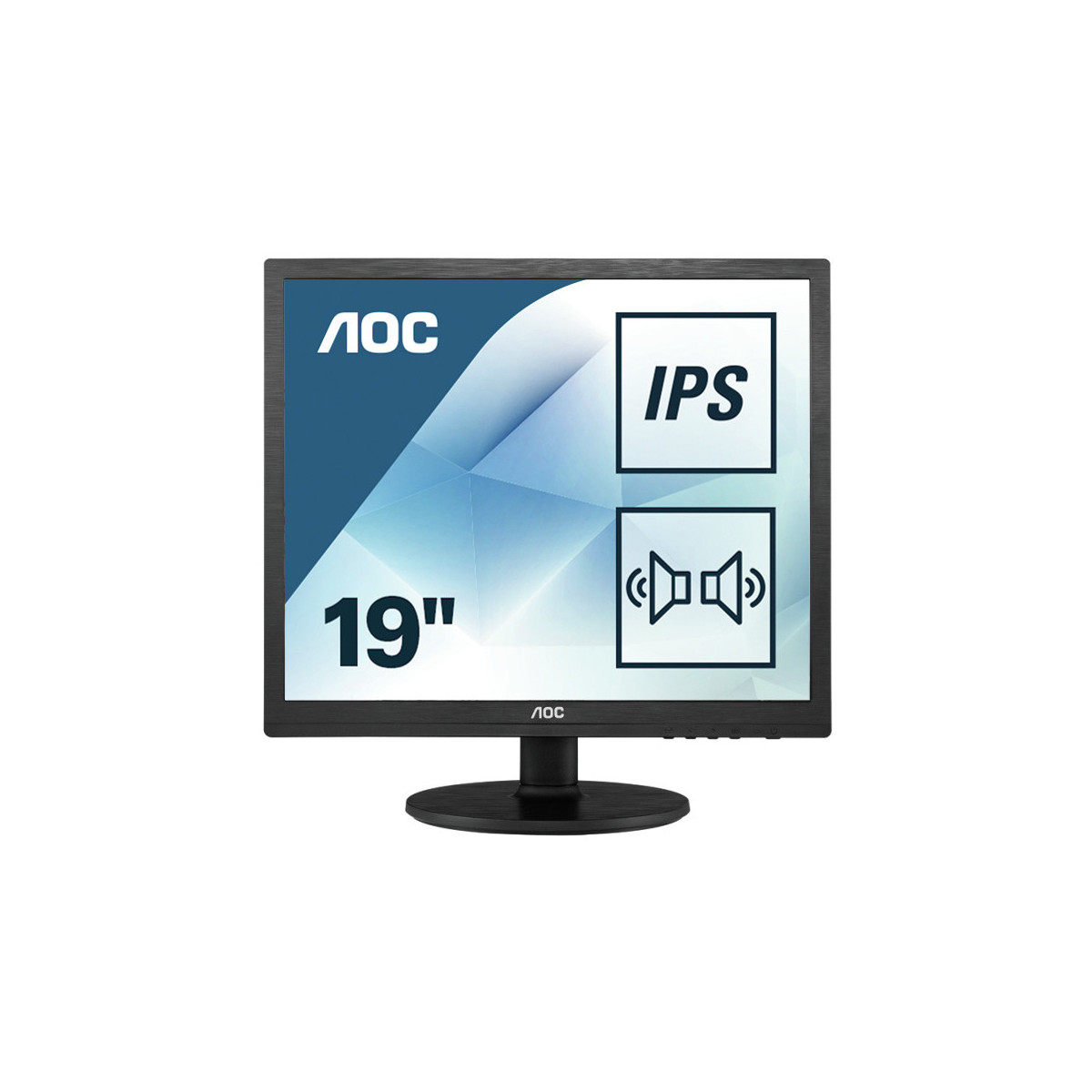 AOC Essential-line I960SRDA. Dimensioni schermo: 48,3 cm (19"), Risoluzione del display: 1280 x 1024 Pixel, Tipologia HD: HD, Tecnologia display: LED, Tempo di risposta: 5 ms, Rapporto d'aspetto nativo: 5:4, Angolo di visualizzazione (orizzontale): 178°, Angolo di visualizzazione (verticale): 178°. Altoparlanti incorporati. Montaggio standard VESA. Certificazione Energy Star, Colore del prodotto: Nero