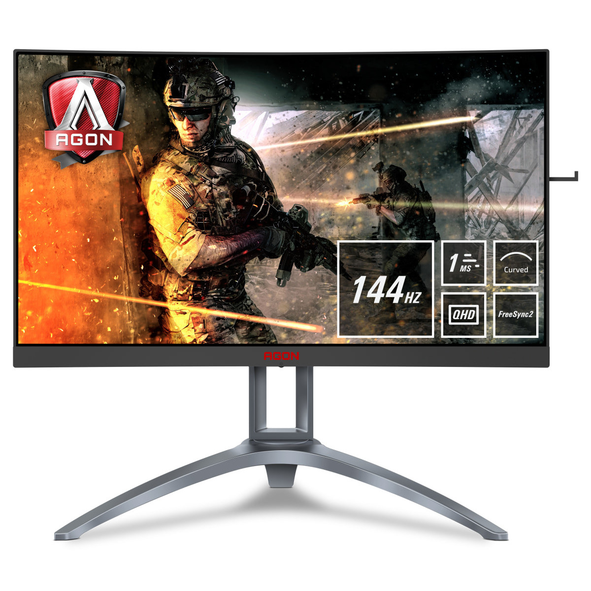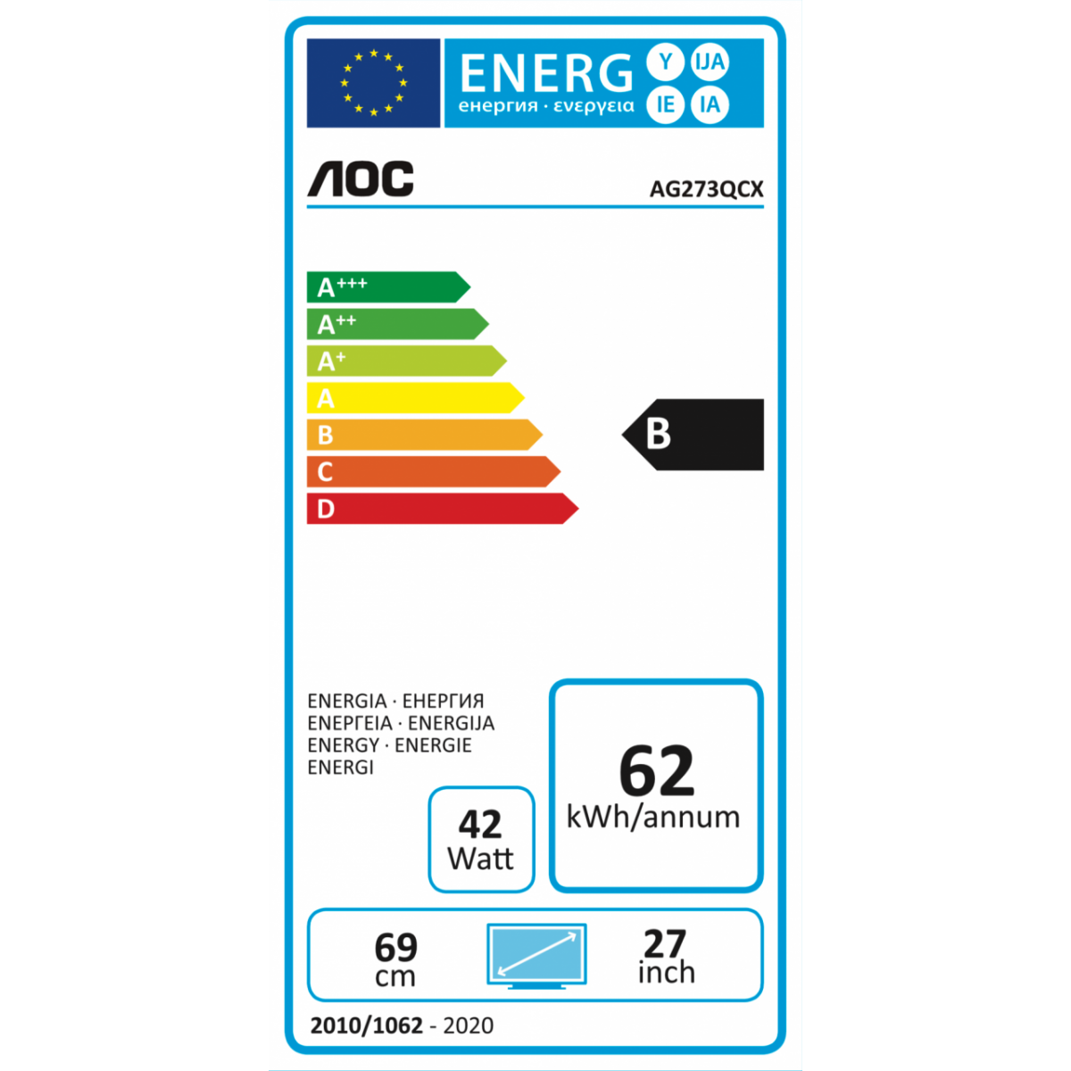 AOC Gaming AG273QCX. Dimensioni schermo: 68,6 cm (27"), Risoluzione del display: 2560 x 1440 Pixel, Tipologia HD: Wide Quad HD, Tecnologia display: LED, Tempo di risposta: 4 ms, Rapporto d'aspetto nativo: 16:9, Angolo di visualizzazione (orizzontale): 178°, Angolo di visualizzazione (verticale): 178°. Altoparlanti incorporati. Hub USB integrato. Montaggio standard VESA, Regolazione altezza. Certificazione Energy Star, Colore del prodotto: Nero, Rosso, Argento