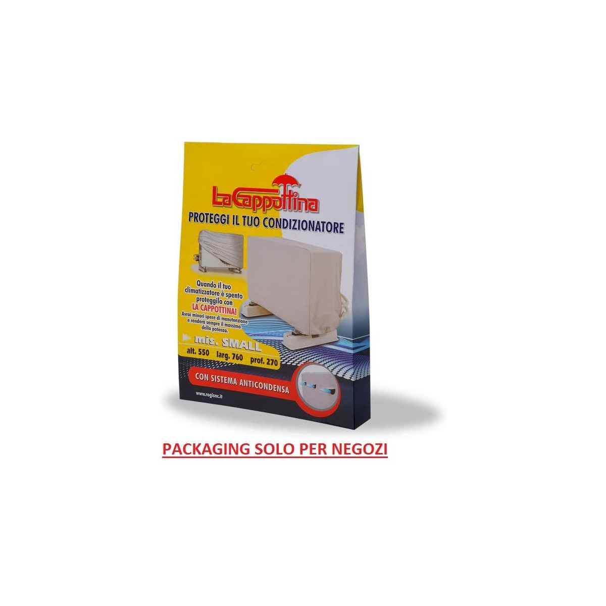 Guaina protettiva per unità esterna del condizionatore fisso, misura Small (H55 x L76 x P27 cm).