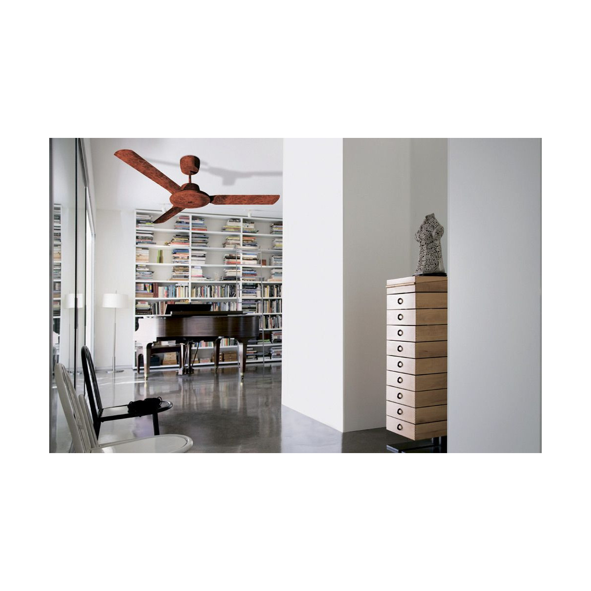 Ventilatore da soffitto con 3 pale in lamiera d'acciaio verniciata, diametro 1284 mm, funzione di reversibilità , finitura di colore radica