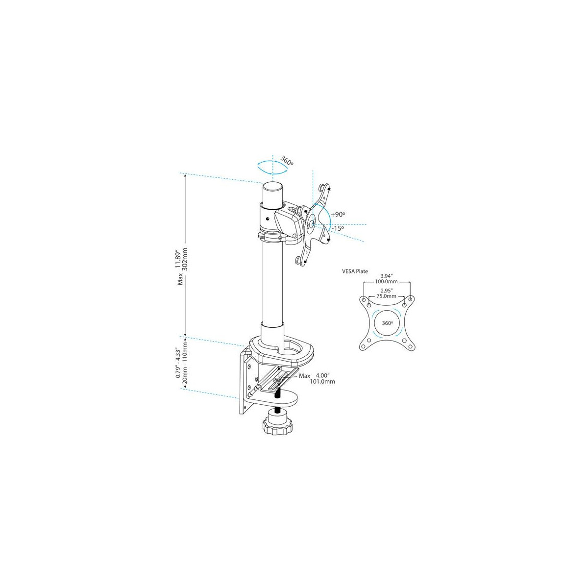 Il monitor per il montaggio alla scrivania presenta un palo di supporto alto 302 mm, per un campo di regolazione dell'altezza maggiore rispetto a quello offerto da un tradizionale supporto per monitor. Per la visualizzazione di pagine di maggiore lunghezza o di blocchi di codici senza dover scorrere lo schermo, il braccio per LCD supporta inoltre la rotazione del display da orizzontale a verticale.