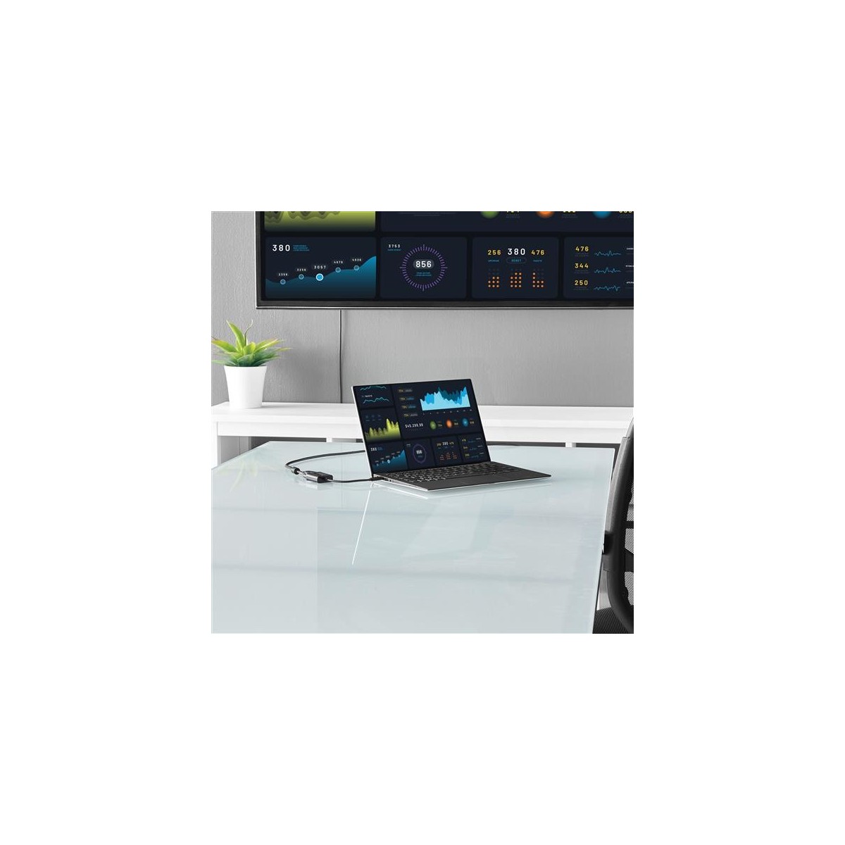 L'adattatore consente di utilizzare la versatile porta USB Type-C del dispositivo portatile. USB Type-C è un connettore reversibile, quindi indipendentemente da come si inserisce, l'adattatore funzionerà sempre, evitando il problema e l'imbarazzo di dover armeggiare al dispositivo quando si deve eseguire una presentazione.