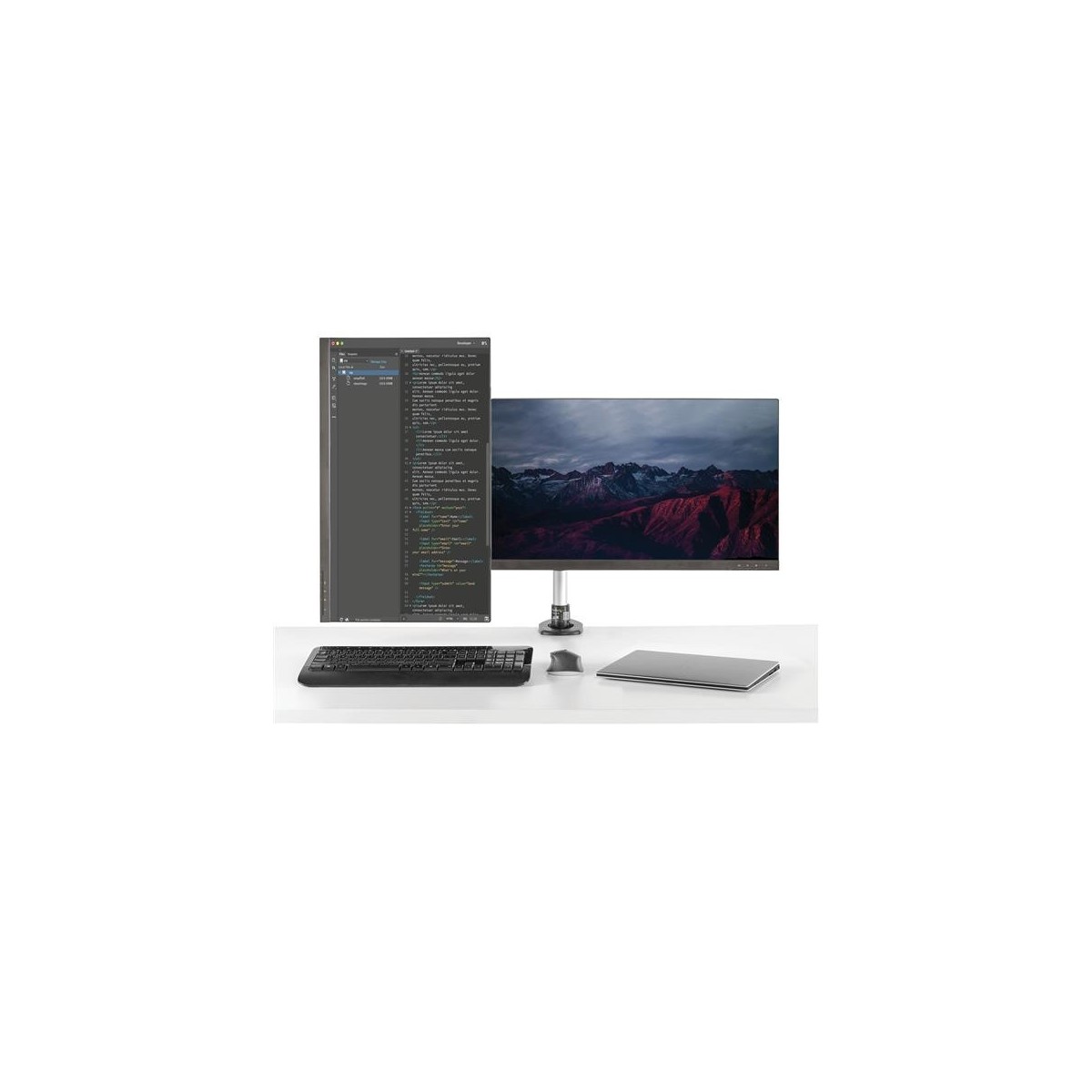 I bracci per monitor con montaggio a scrivania offrono una gamma completa di movimento su diversi assi, permettendo l’inclinazione, la disposizione orizzontale e la rotazione, per regolare l'angolo di visualizzazione in qualsiasi momento in funzione delle esigenze. Per la visualizzazione di pagine di maggiore lunghezza o di blocchi di codici senza dover fare scorrere lo schermo, i bracci supportano inoltre la rotazione del display da orizzontale a verticale per ciascun monitor.