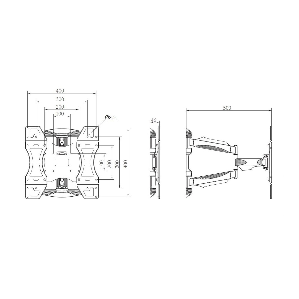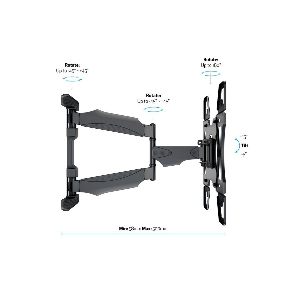 Multibrackets 1725. Adatto per: TV, Peso massimo (capacità): 30 kg, Capienza minima dimensioni dello schermo: 81,3 cm (32"), Capienza massima dimensioni dello schermo: 127 cm (50"), Compatibilità interfaccia di montaggio (min): 100 x 100 mm, Compatibilità interfaccia di montaggio (max): 400 x 400 mm. Inclinazione: -5 - 15°, Distanza dalla parete (min): 5 cm, Distanza dal muro (massima): 49 cm. Colore del prodotto: Nero