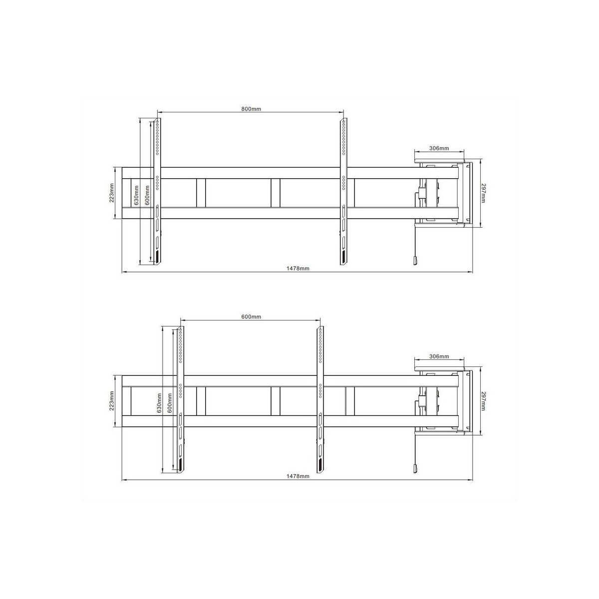 Multibrackets 2654. Adatto per: TV, Peso massimo (capacità): 125 kg, Capienza minima dimensioni dello schermo: 177,8 cm (70"), Capienza massima dimensioni dello schermo: 2,13 m (84"), Compatibilità interfaccia di montaggio (min): 200 x 200 mm, Compatibilità interfaccia di montaggio (max): 600 x 400 mm. Distanza dalla parete (min): 5,4 cm, Distanza dal muro (massima): 148,1 cm. Colore del prodotto: Nero