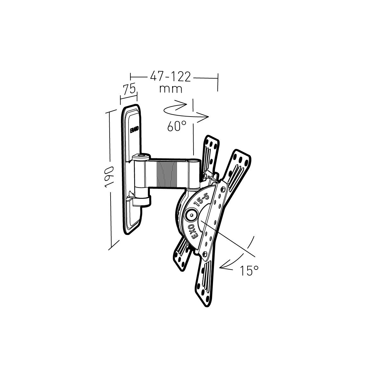 Erard EXO 200TW1. Peso massimo (capacità): 15 kg, Capienza minima dimensioni dello schermo: 38,1 cm (15"), Capienza massima dimensioni dello schermo: 94 cm (37"). Inclinazione: 0 - 15°. Colore del prodotto: Nero
