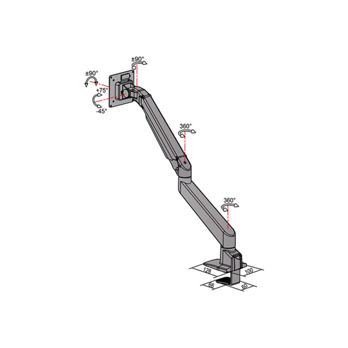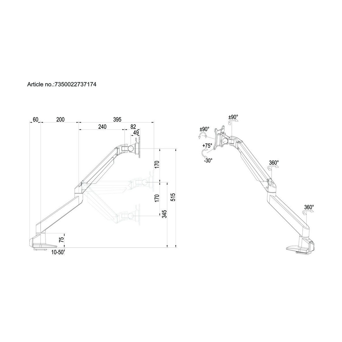 Multibrackets 7174. Montaggio: Morsa, Adatto per: Monitor per computer, Peso massimo (capacità): 10 kg, Capienza minima dimensioni dello schermo: 38,1 cm (15"), Capienza massima dimensioni dello schermo: 81,3 cm (32"), Compatibilità interfaccia di montaggio (min): 75 x 75 mm, Compatibilità interfaccia di montaggio (max): 100 x 100 mm. Regolazione altezza, Inclinazione: -45 - 75°. Colore del prodotto: Nero