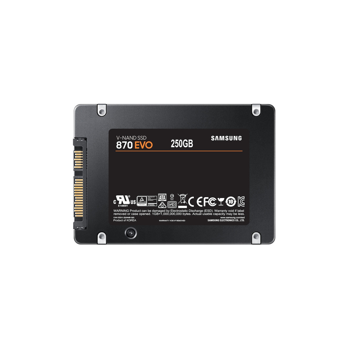 Samsung 870 EVO. Capacità SSD: 250 GB, Fattore di forma dell'unità SSD: 2.5", Velocità di lettura: 560 MB/s, Velocità di scrittura: 530 MB/s. Colore del prodotto: Nero